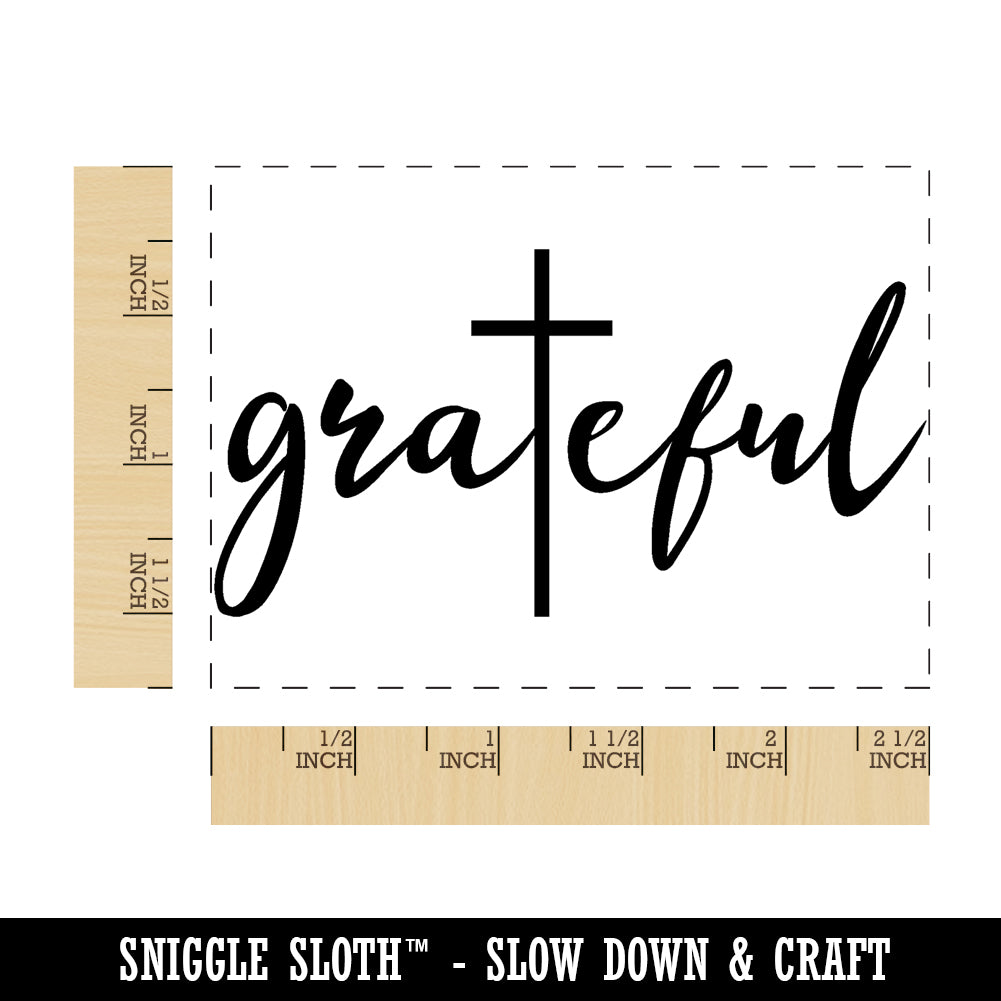 Inspirational Grateful with Cross Christianity Rectangle Rubber Stamp for Stamping Crafting