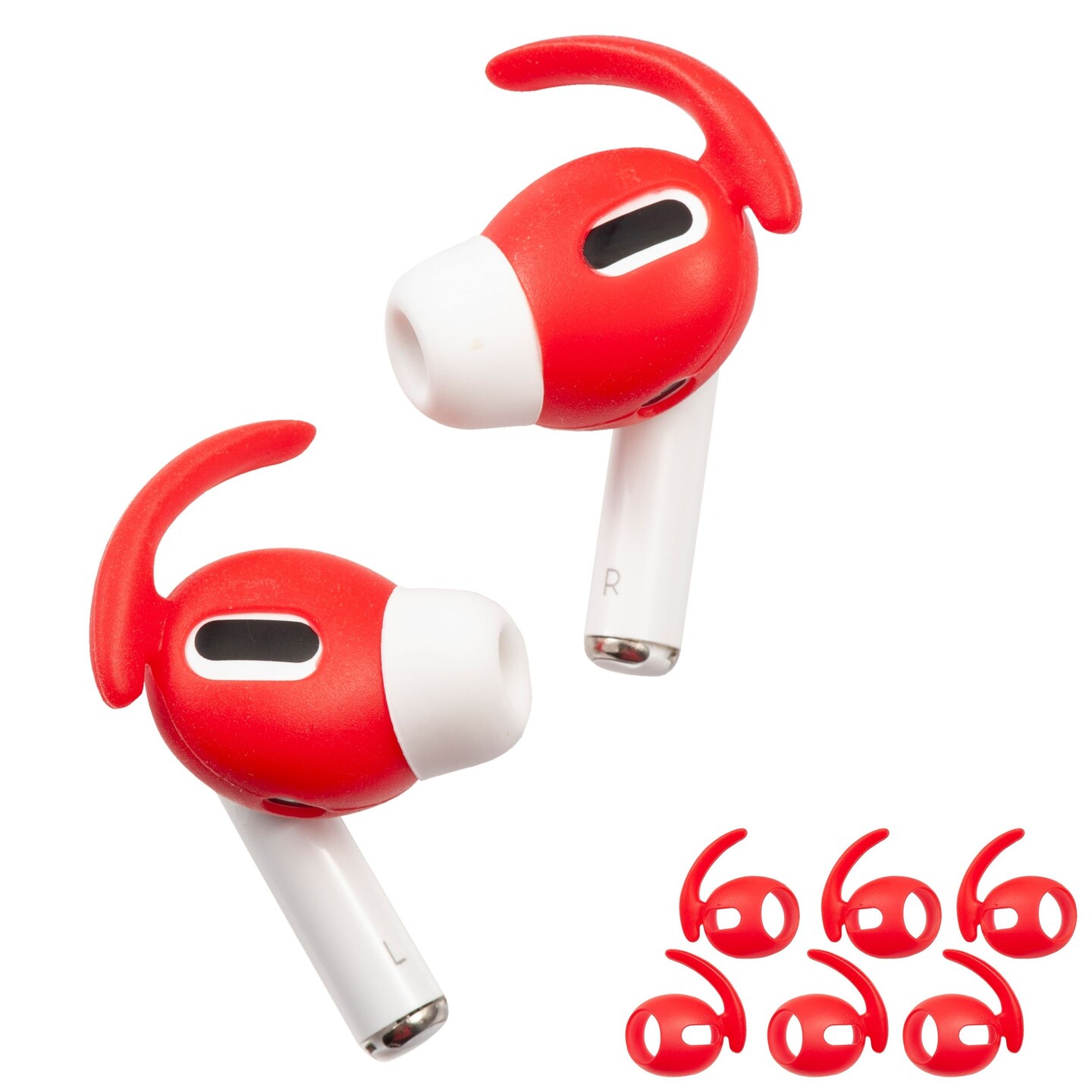Insten 3 Pairs Ear Hooks Compatible with AirPods Pro 2019 Earbuds, Anti-Lost EarHooks Accessories, Comfortable Soft Silicone Covers, with Storage Box (Not Fit in Charging Case) Red