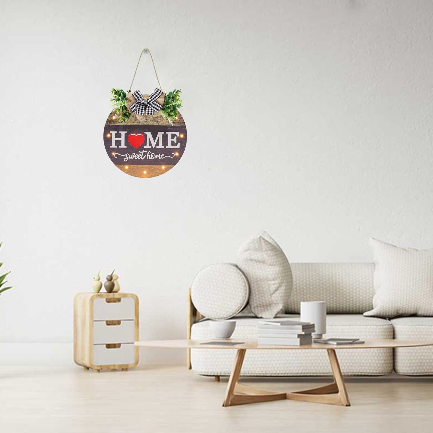 Interchangeable Seasonal Welcome Sign Front Door Decoration with 4 Seasonal Wreaths and LED Light, Rustic Round Wood Wreaths Wall Hanging Outdoor, Farmhouse Front Door Decoration Home Décor