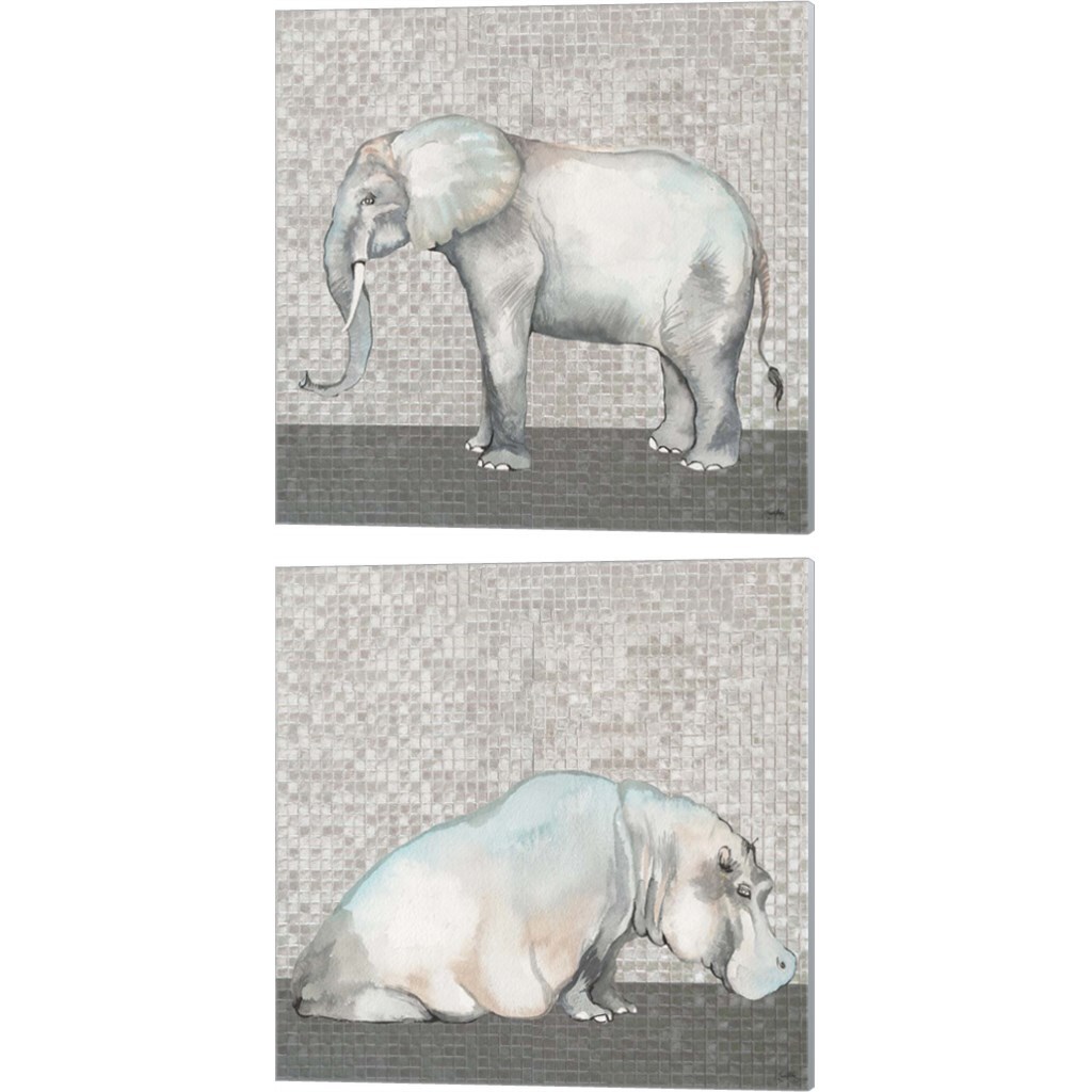 Introspective Elephant & Hippo by Elizabeth Medley 14" x 14" Canvas Wall Art (Set of 2)