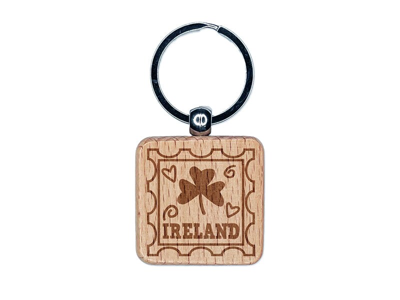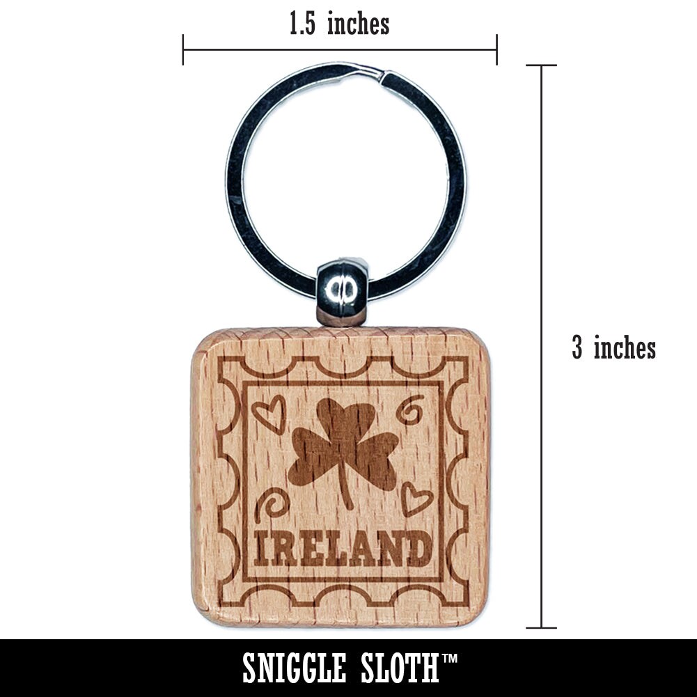 Ireland Shamrock Passport Travel Engraved Wood Square Keychain Tag Charm