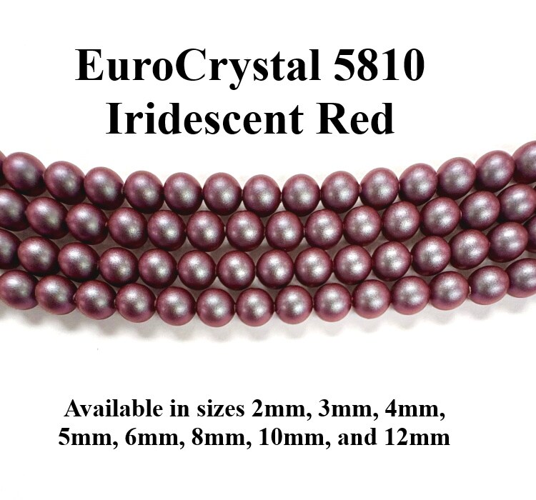 Iridescent Red EuroCrystal 5810 Round Pearls - 2mm, 3mm, 4mm, 5mm, 6mm, 8mm, 10mm, and 12mm - Strands - Made in Austria