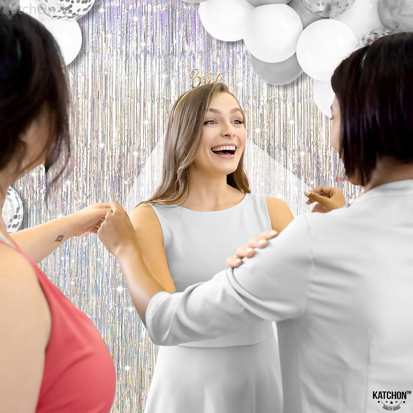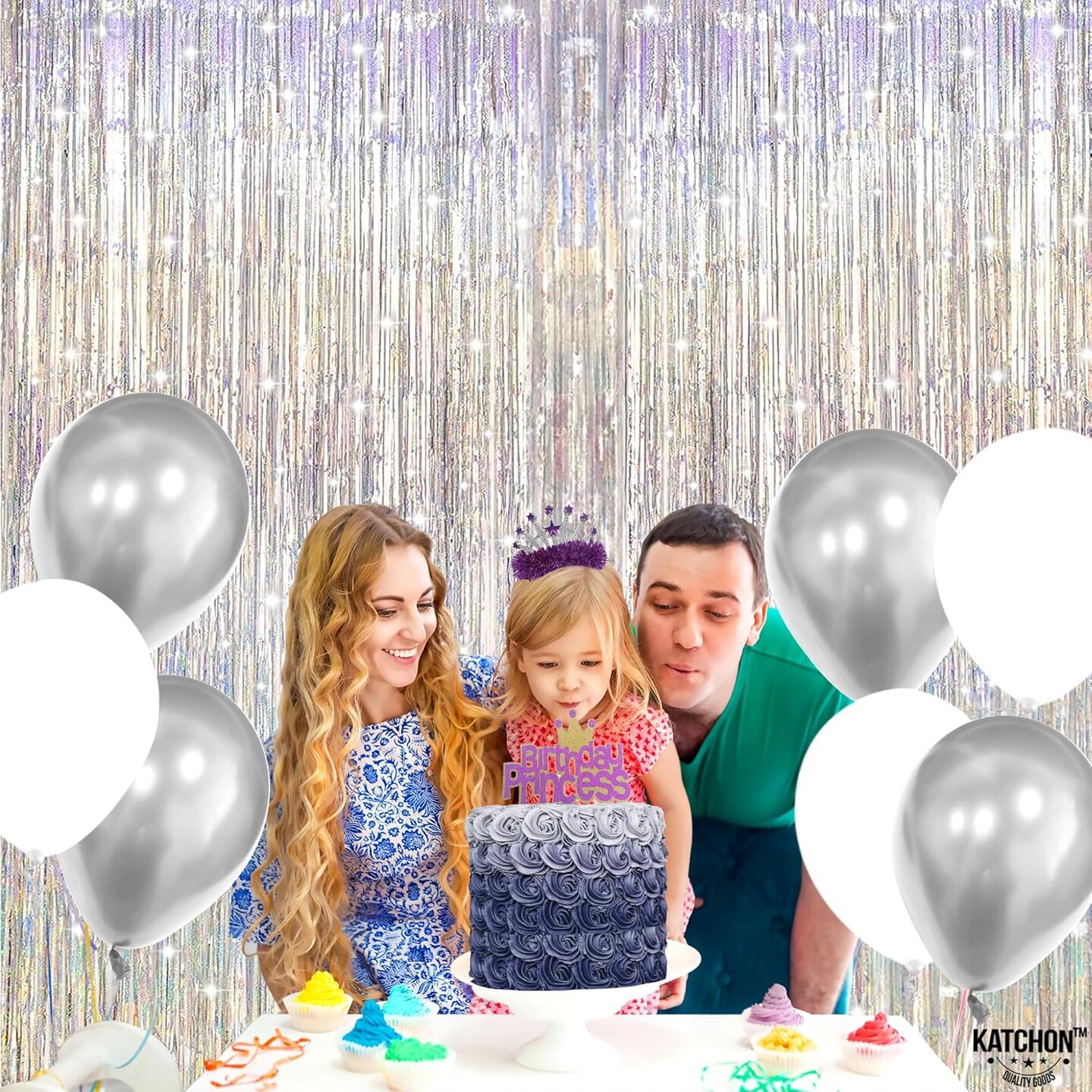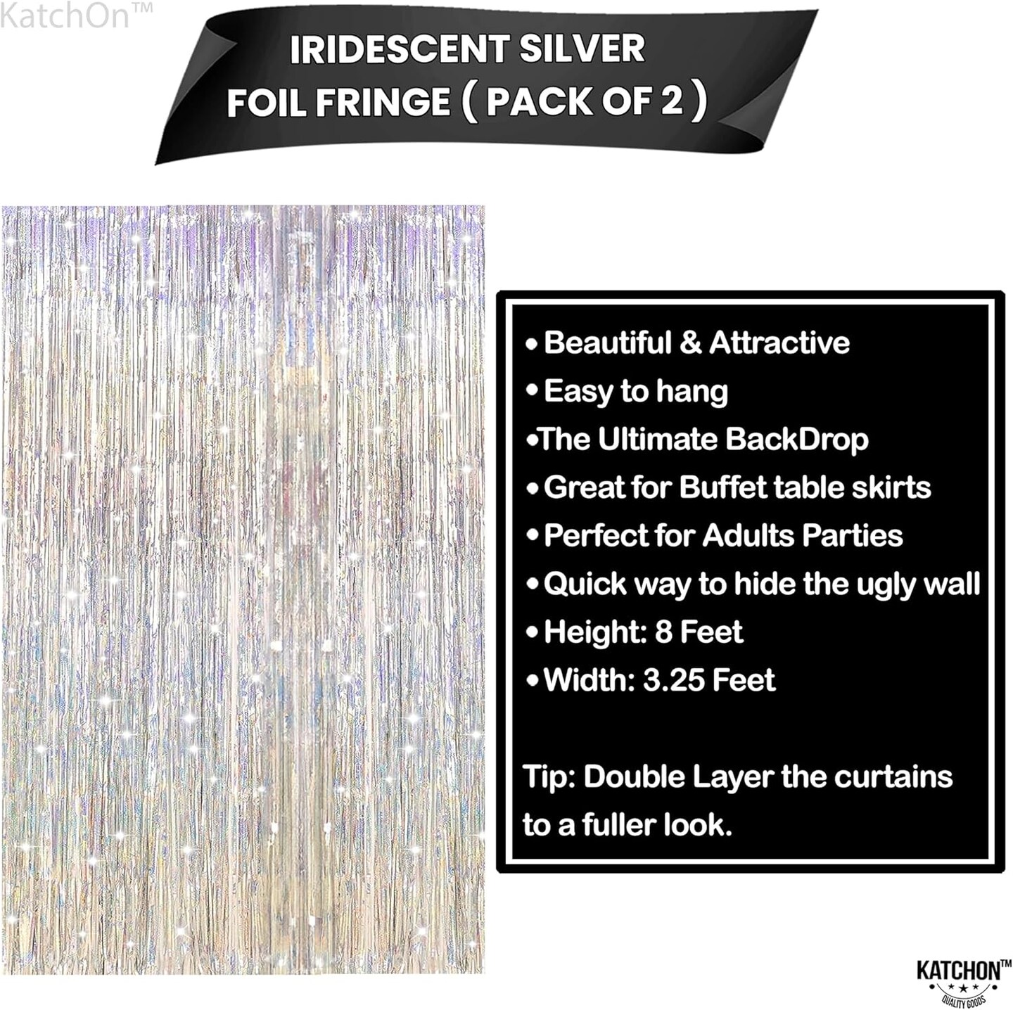 Iridescent Silver Backdrop Curtain - XtraLarge, 3.2x8 Feet Pack of 2 | Silver Fringe Backdrop | Silver Streamer Backdrop, Iridescent Ramadan Decorations for Home | Graduation Decorations