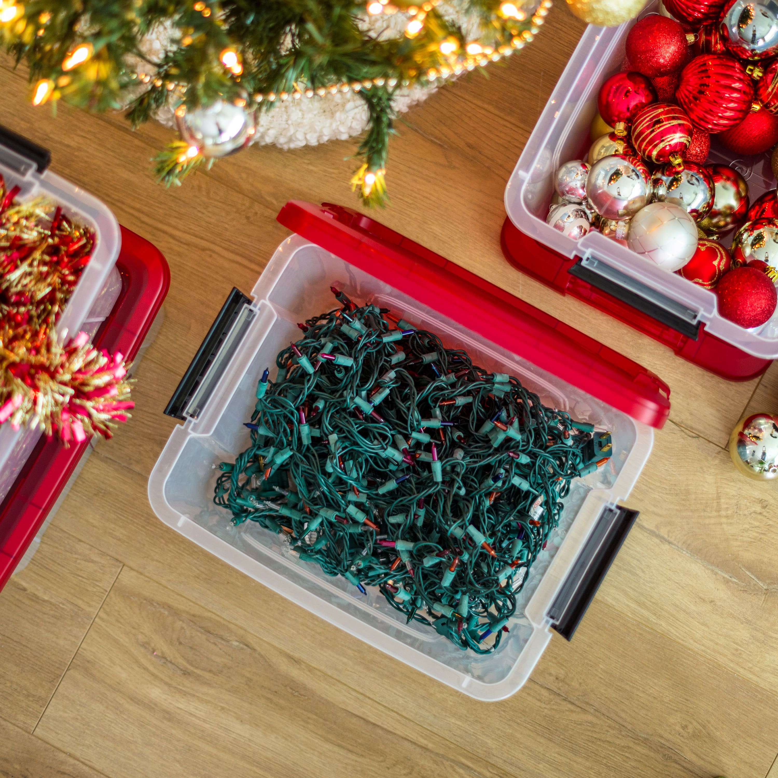 IRIS® 20.5qt. Clear Holiday Storage Boxes with Red Buckle Lids, 4ct.
