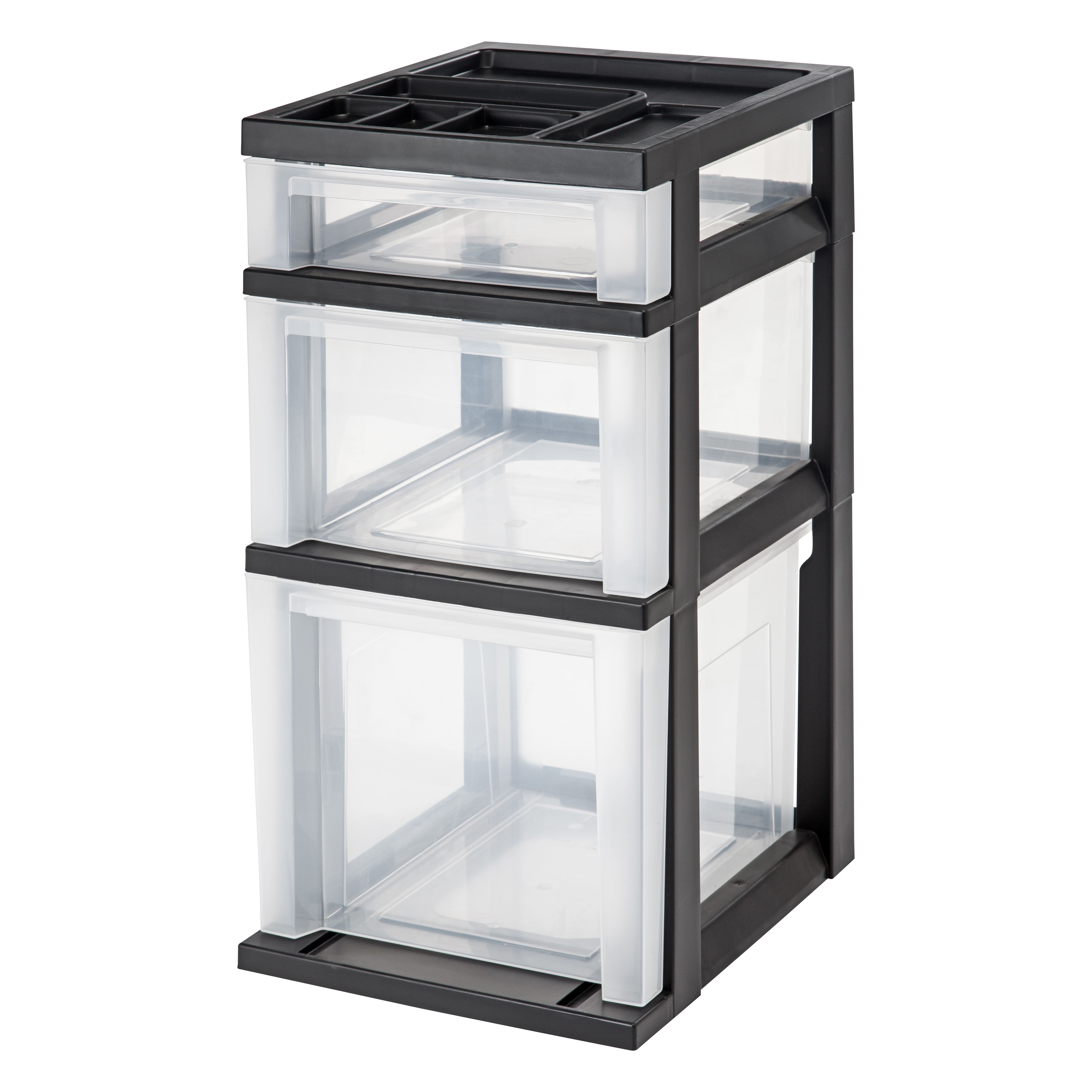 Iris® 3-Drawer Cart with Organizer Top, Black