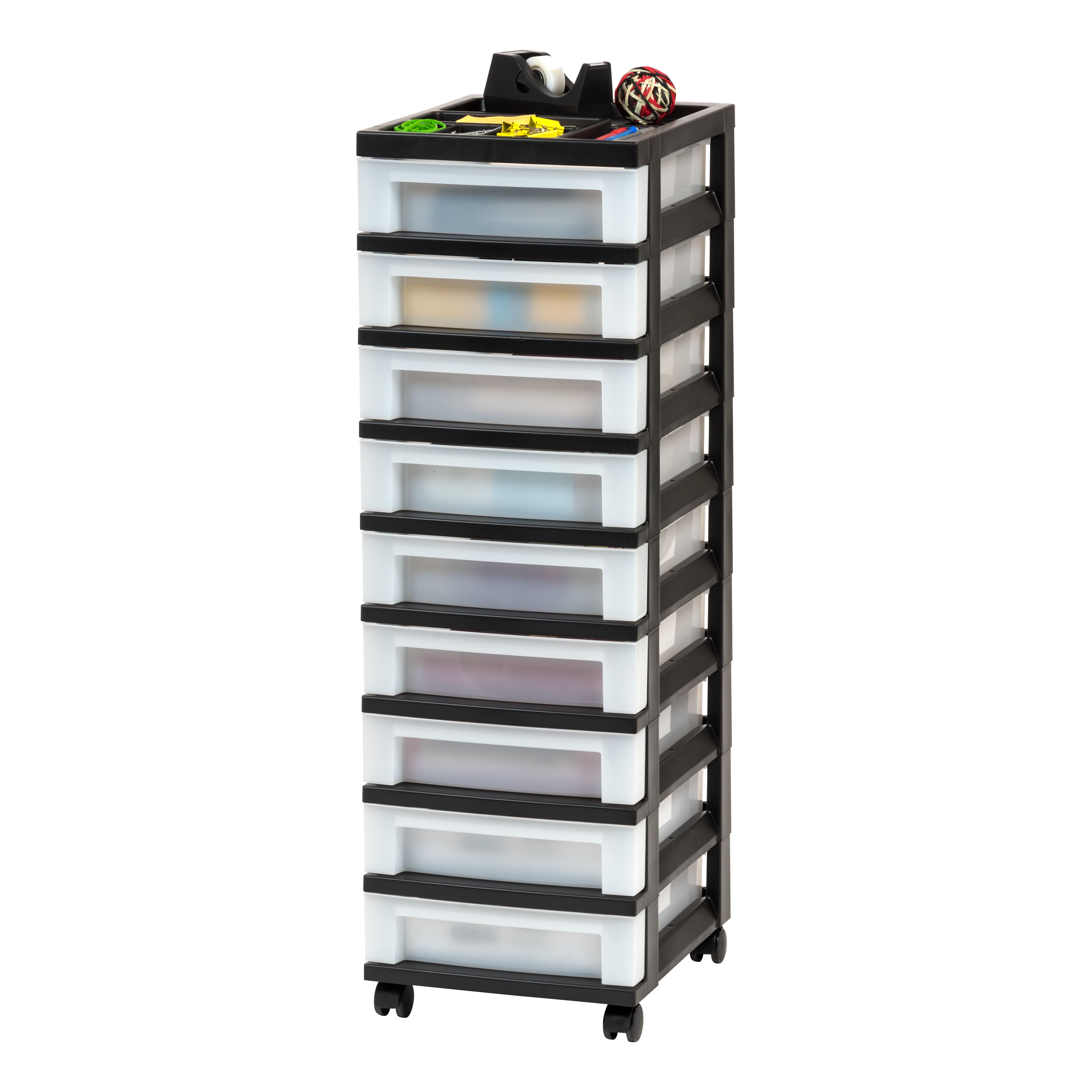 IRIS Black 9-Drawer Storage Cart with Organizer Top
