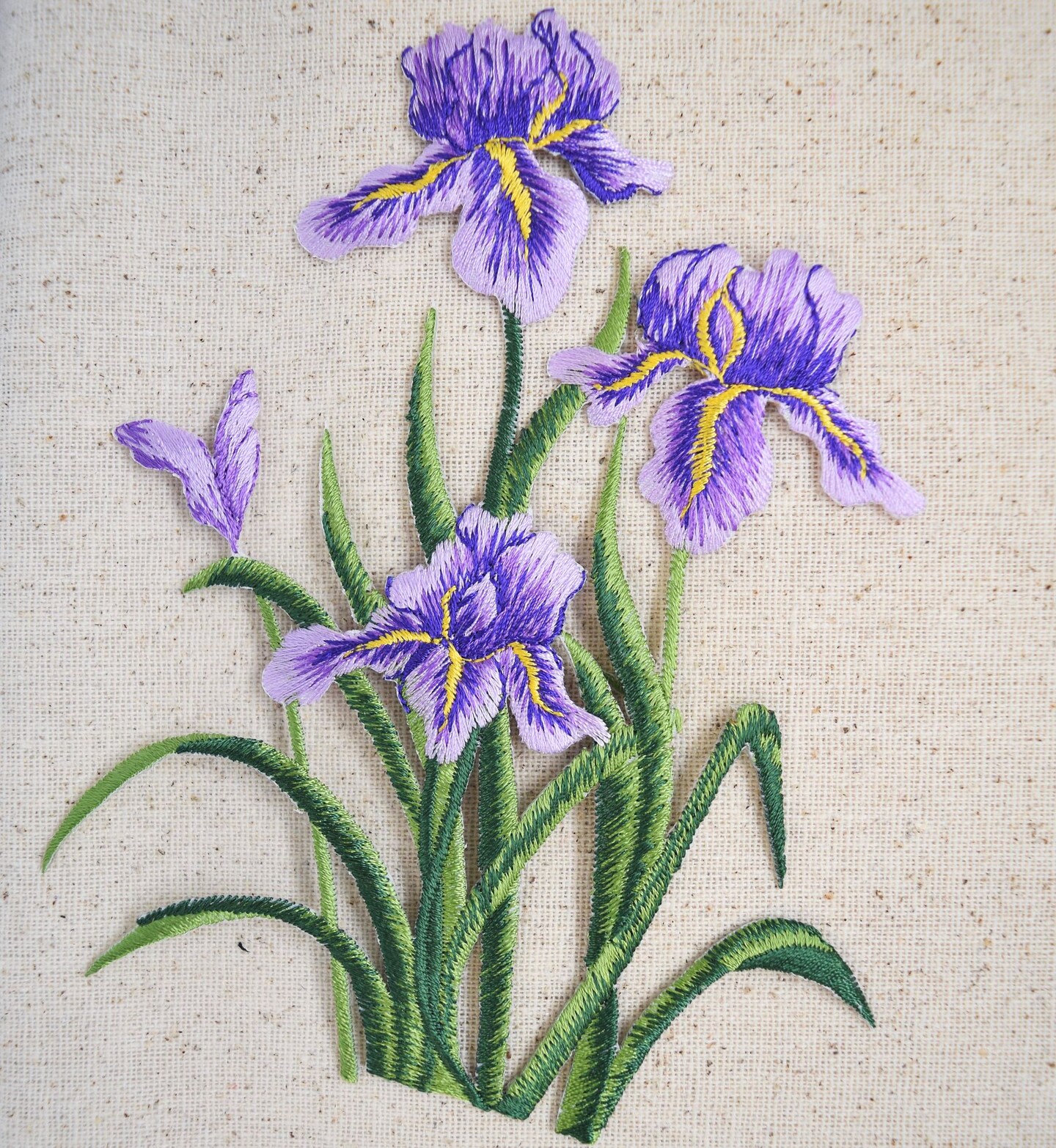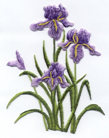 Iris Group, Purple Flowers, Embroidered, Iron on Patch