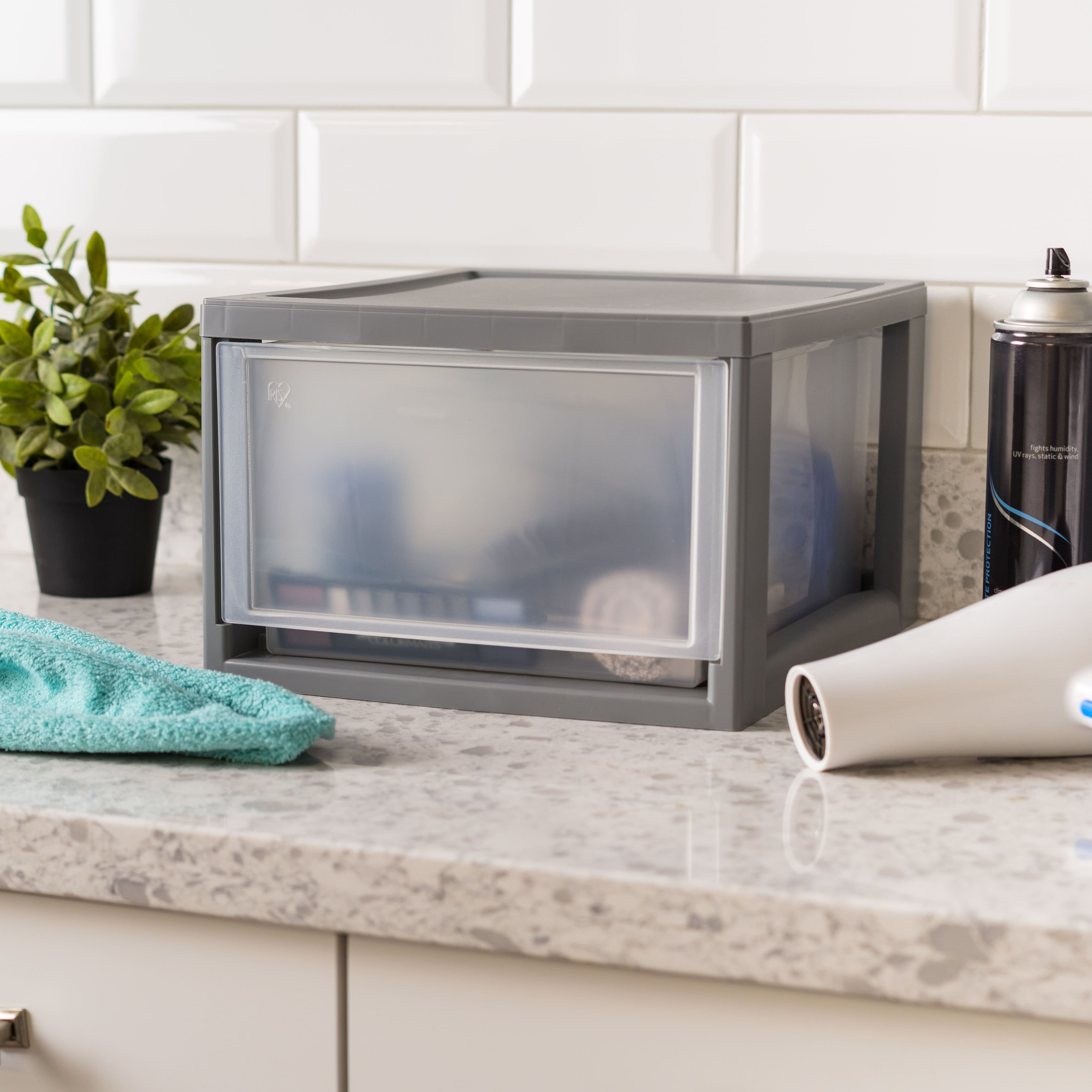 IRIS® Medium Gray Stackable Storage Bin with Clear Drawer