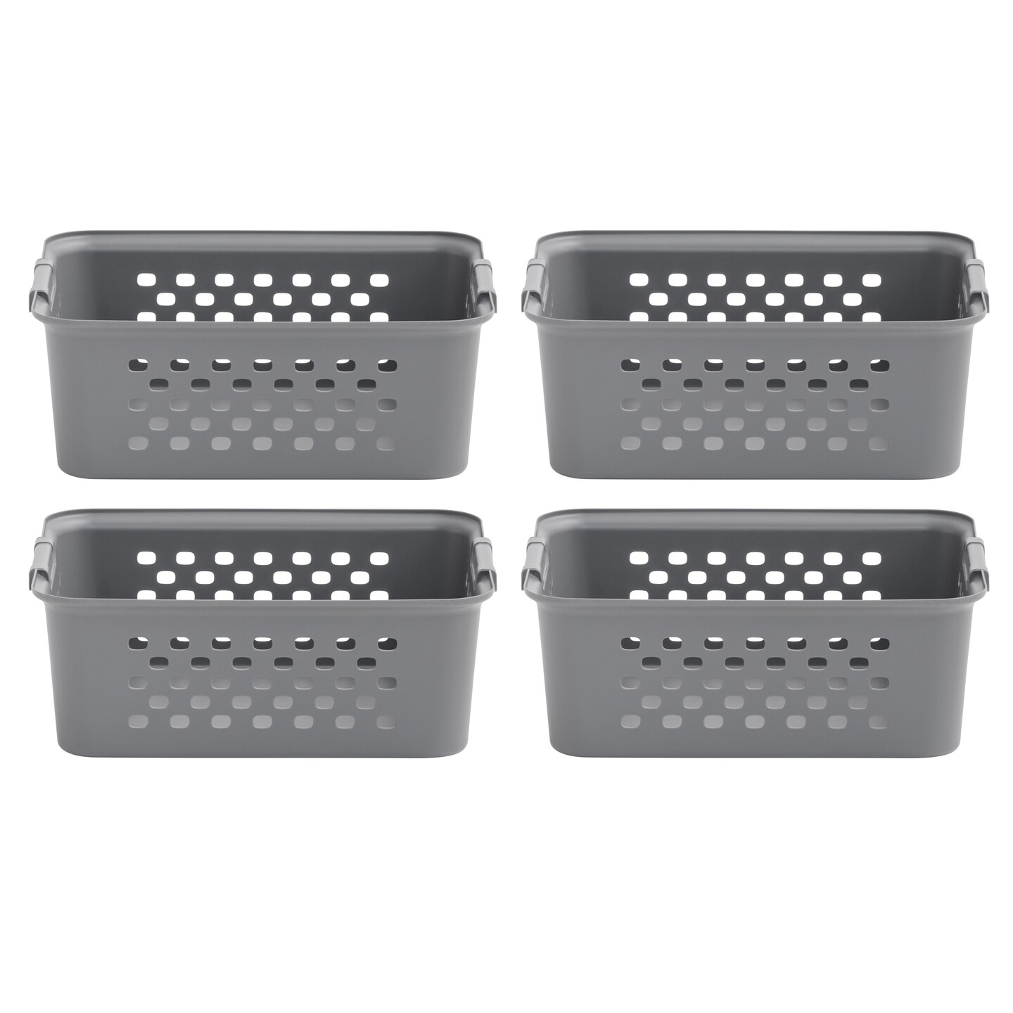 IRIS USA Medium Organizer Storage Basket, Gray, Pack of 4