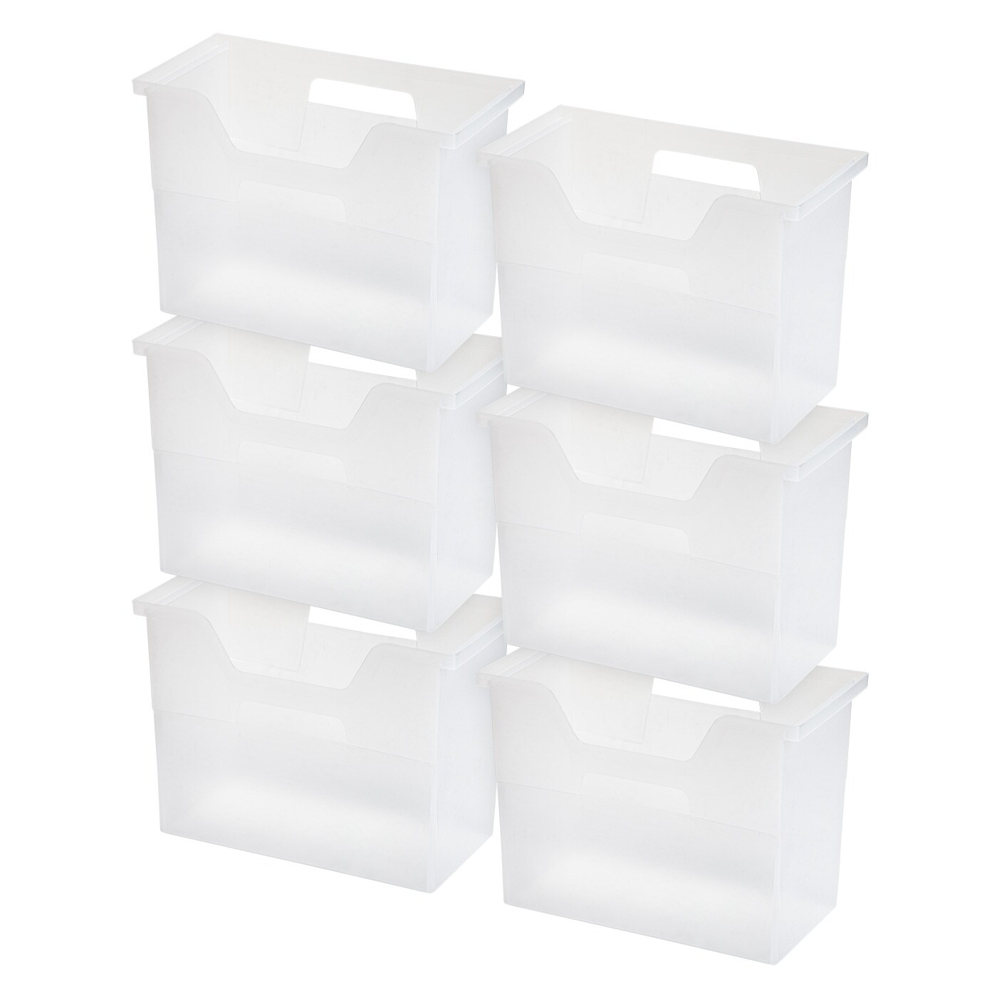 IRIS USA Medium Portable Desktop File Box with Open Lid, 6 Pack, Side Handles, Hanging File Folders, Tabs & Inserts, Letter Size, Magazines, Newspapers, Mail, Books, Notebooks, Clear