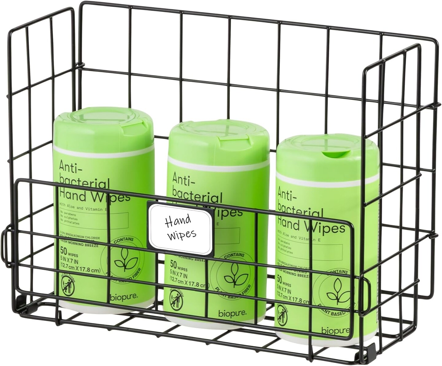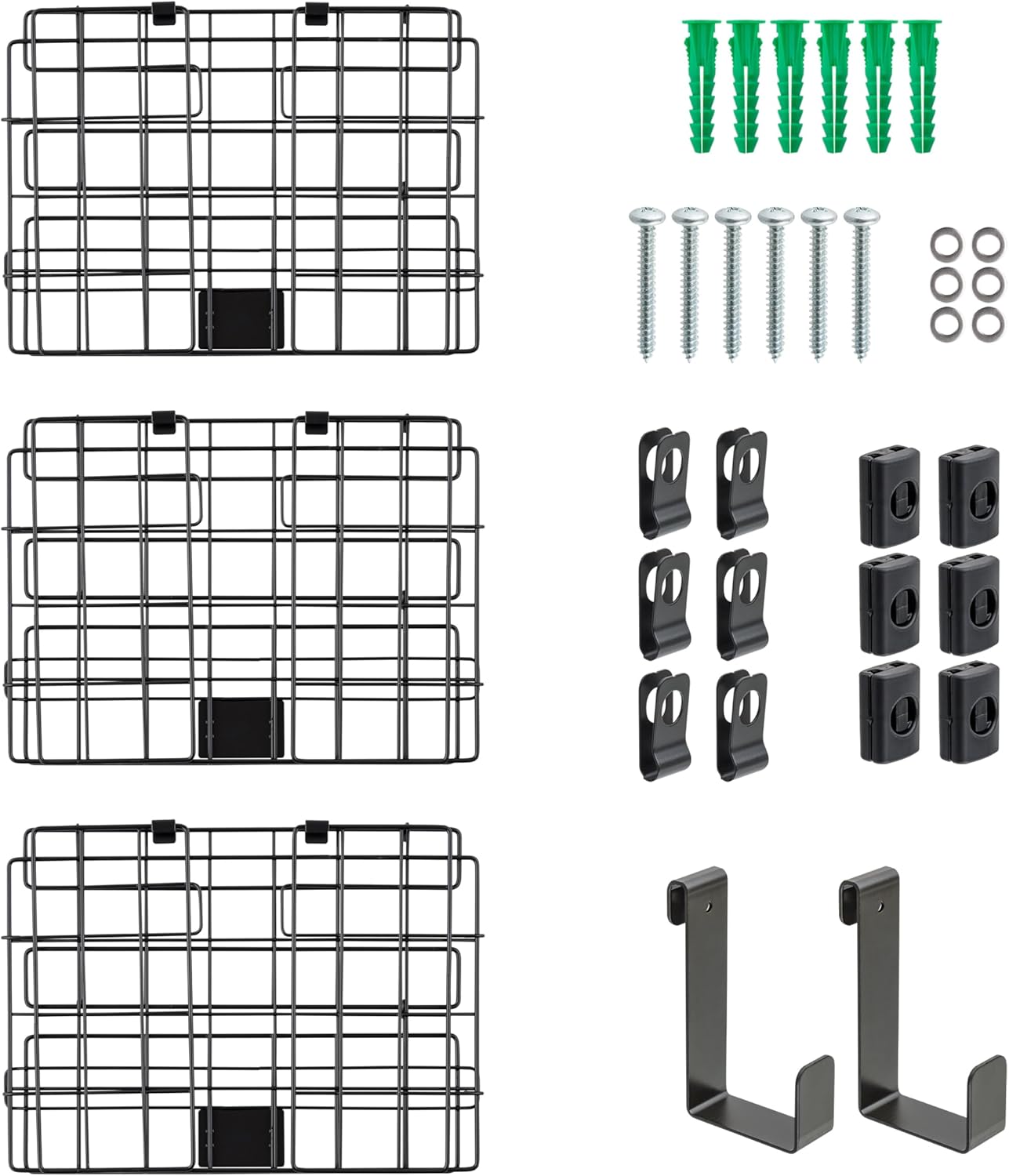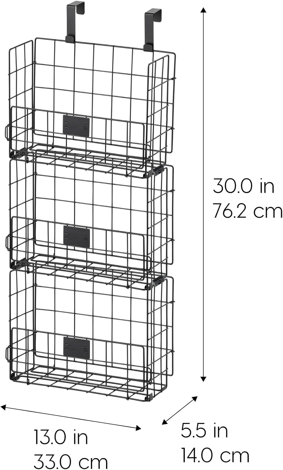 IRIS USA Over The Door Organizer, 3 Pack, Hanging or Wall Mounted Metal Wire Basket, Durable Easy Assembly, Black