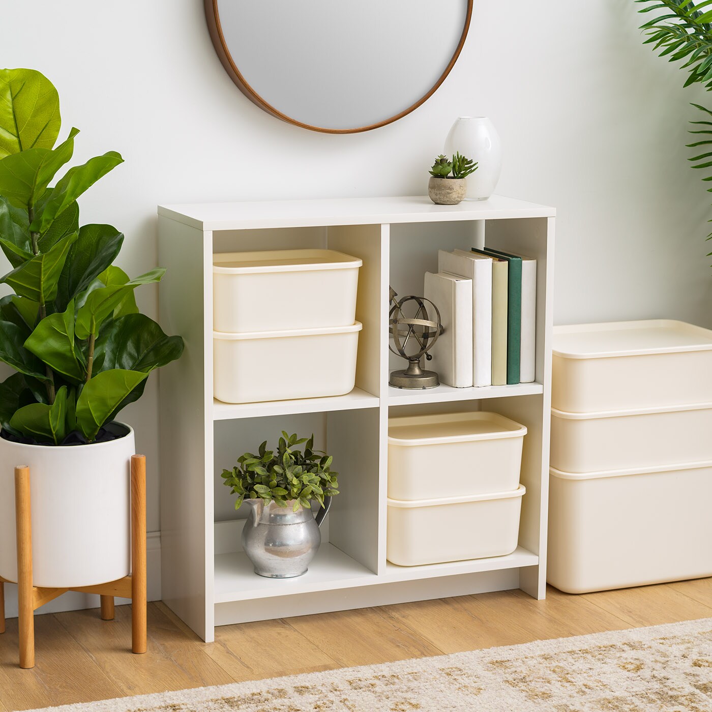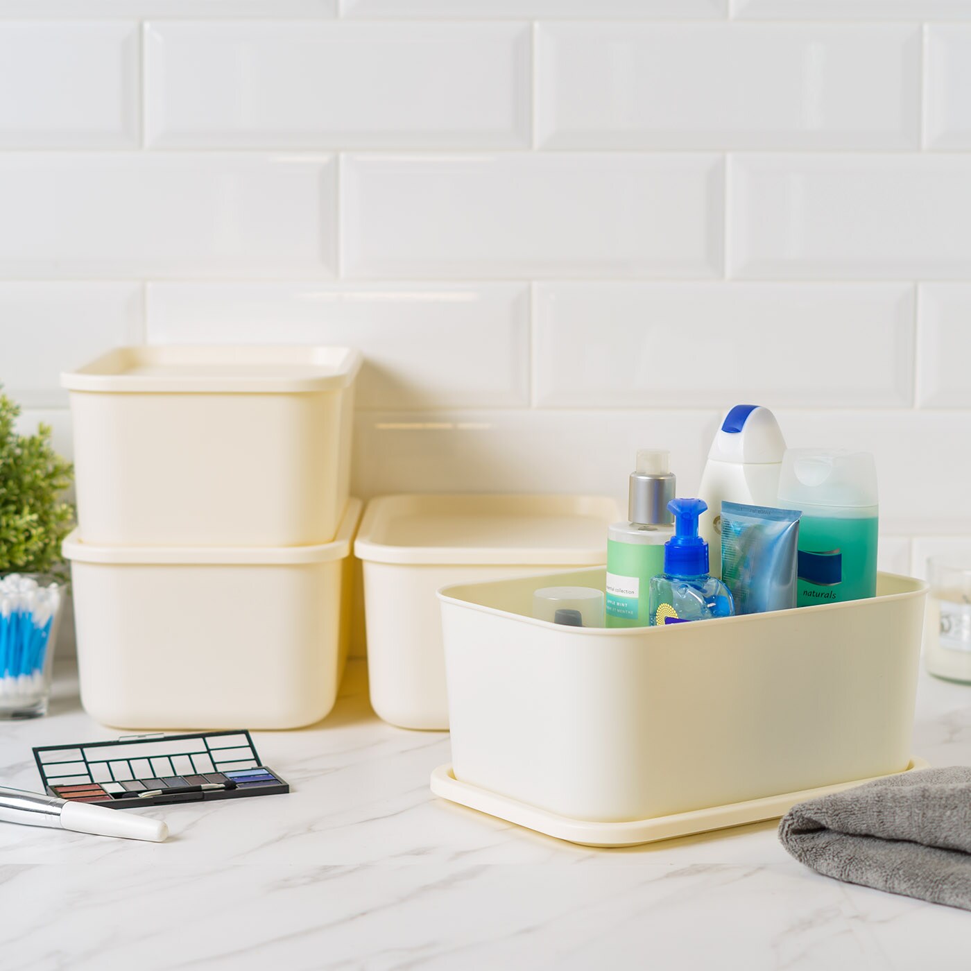 IRIS USA Plastic Modular Stackable Lidded Basket Storage Organizer Bins