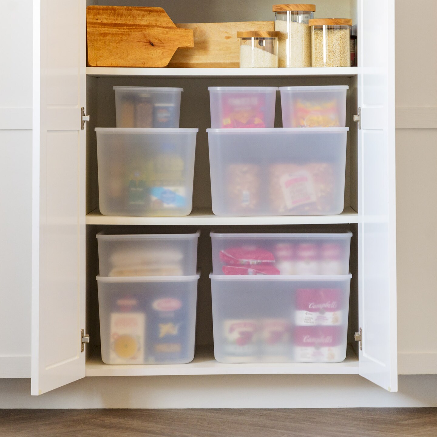 IRIS USA Plastic Modular Stackable Lidded Basket Storage Organizer Bins
