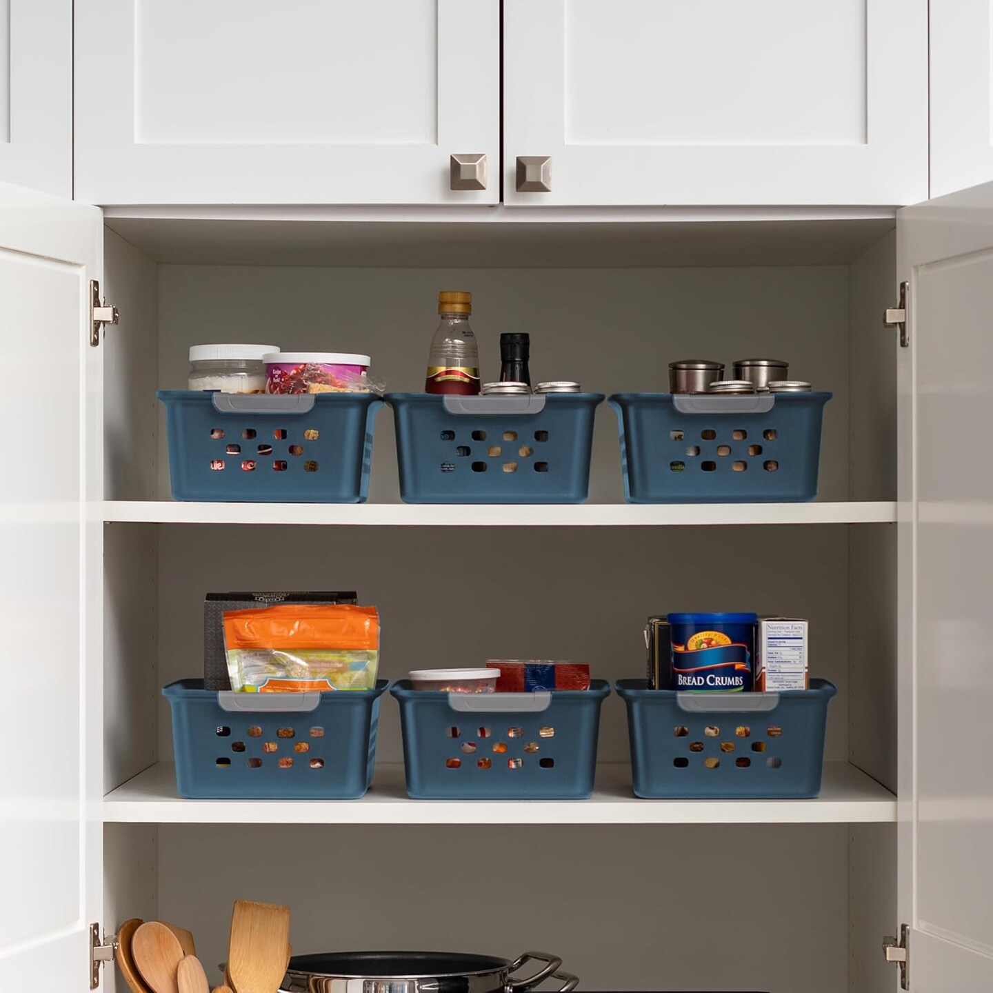 IRIS USA Plastic Storage Basket, Shelf Basket Organizer for Pantries