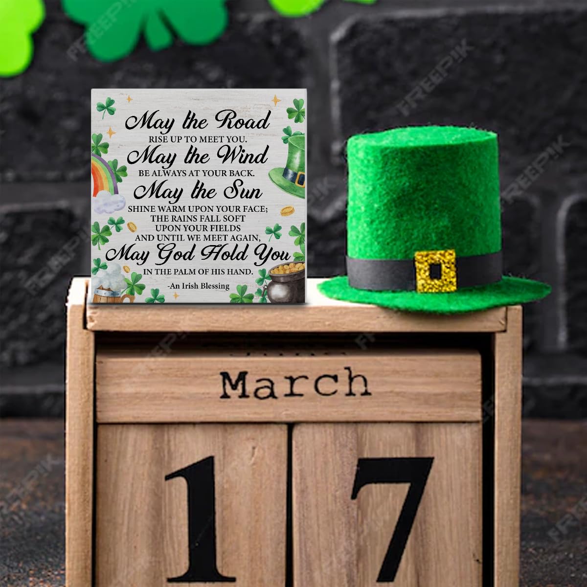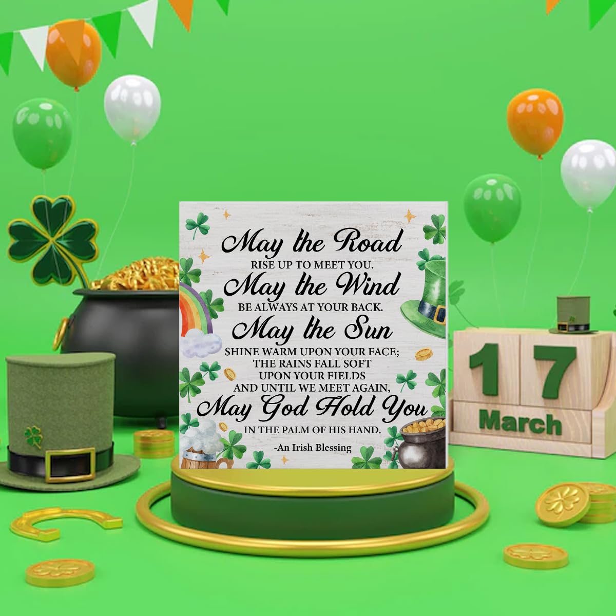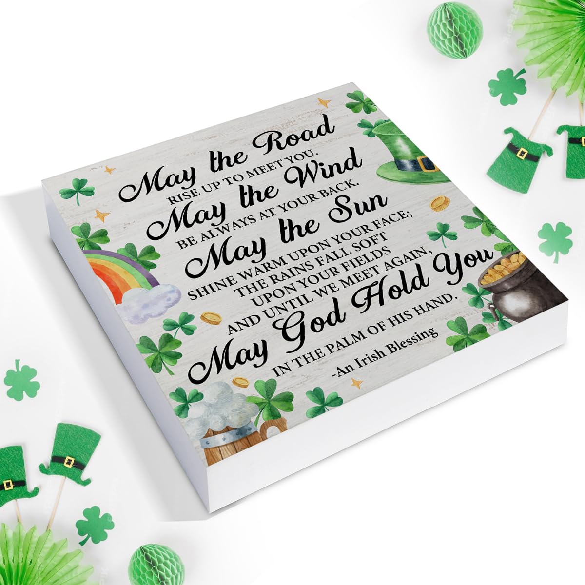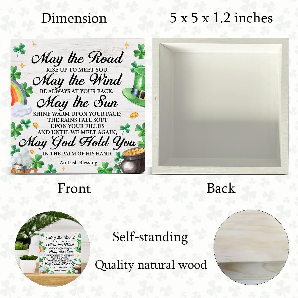 Irish Blessing Decorations St. Patricks Day Decor, Rustic an Irish Blessing Wood Sign Home Tabletop Shelf Desk Decor, St Patricks Day Decorations, 5 X 5 Inches