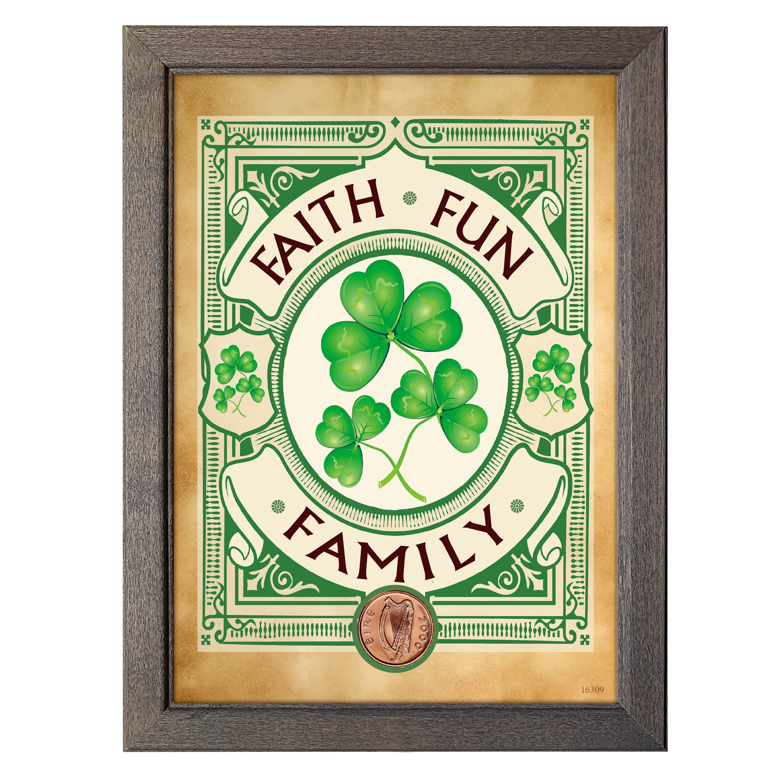 Irish- Faith, Fun, Family with Irish Penny Coin in 5" x 7" Frame