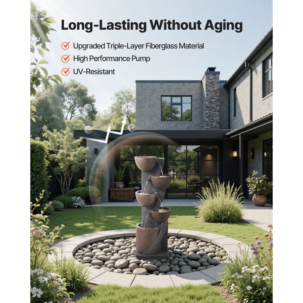 Iron Brown 5-Tier Water Fountain with Fiberglass Resin and LED Lights