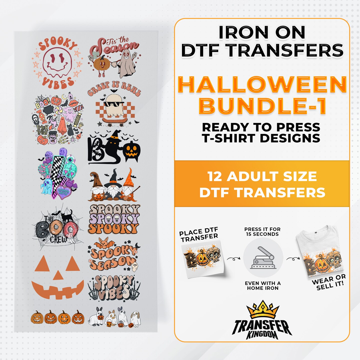 Iron on DTF Transfer Halloween Bundle 1 - 12 Best Seller T-shirt Designs Ready To Press