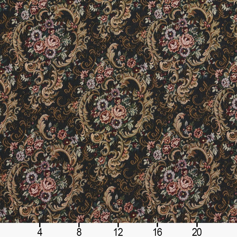 Isabella - Black Floral Upholstery Fabric 54 Inches"
