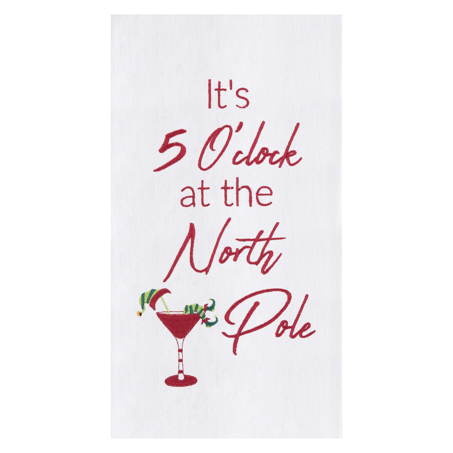 "It's 5 O'clock At The North Pole" Martini Drinking Holiday Christmas Embroidered Flour Sack Kitchen Towel