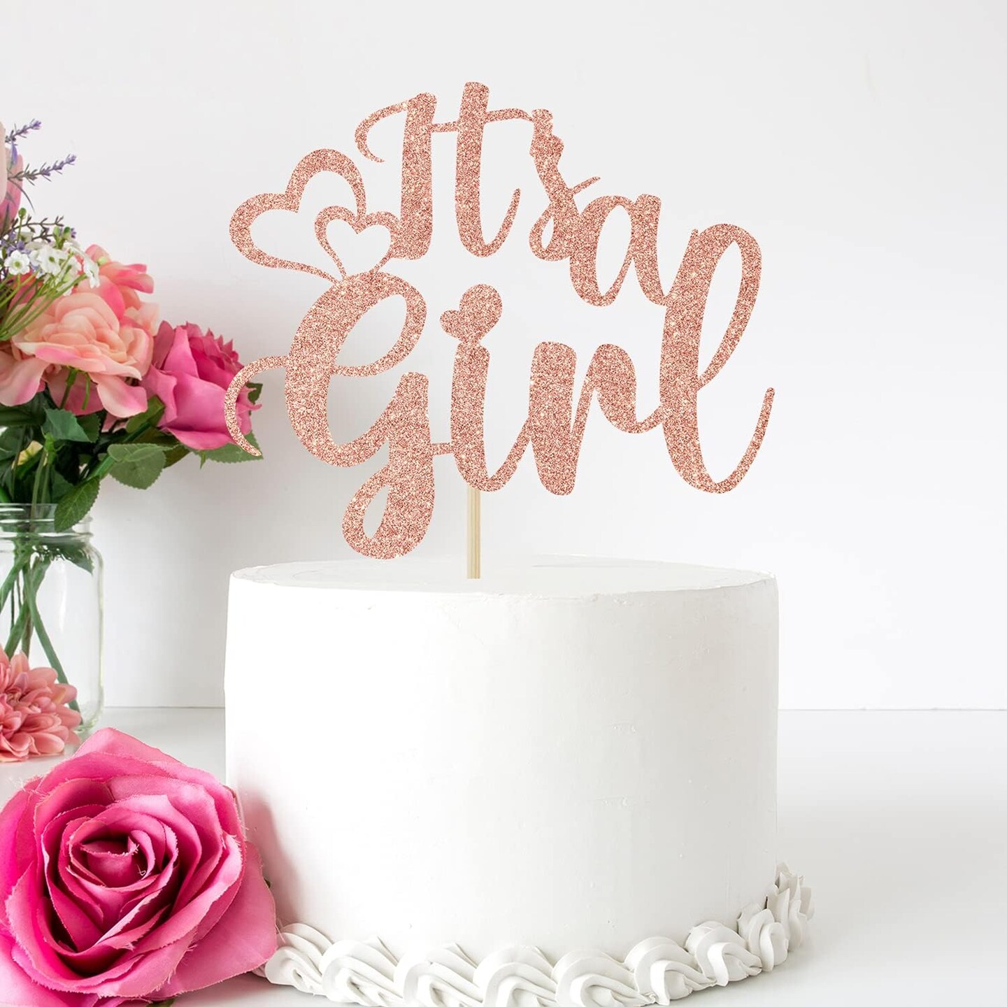 It’s a Girl Cake Topper,Sweet Baby Girl Decorations,Baby Shower/Gender Reveal Party Decorations,Baby Girls 1st Birthday Party Decoration Supplies Rose Gold Glitter
