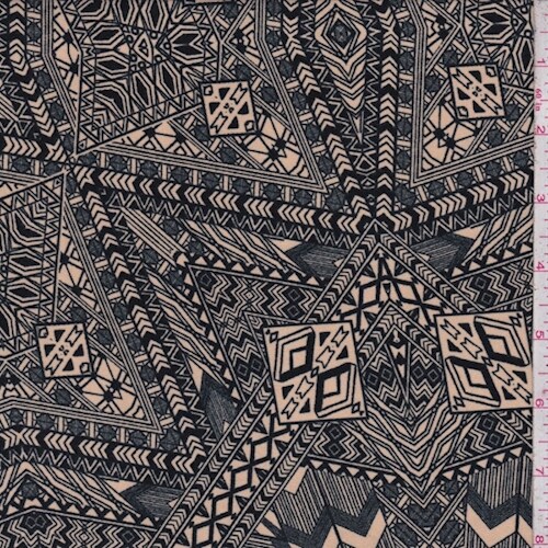 ITY Beige/Charcoal Tribal Jersey Knit Fabric By the Yard