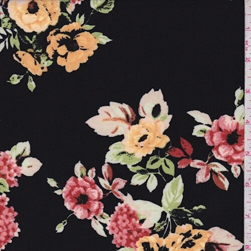 ITY Black/Rust Red Zinnia Jersey Knit Fabric By the Yard