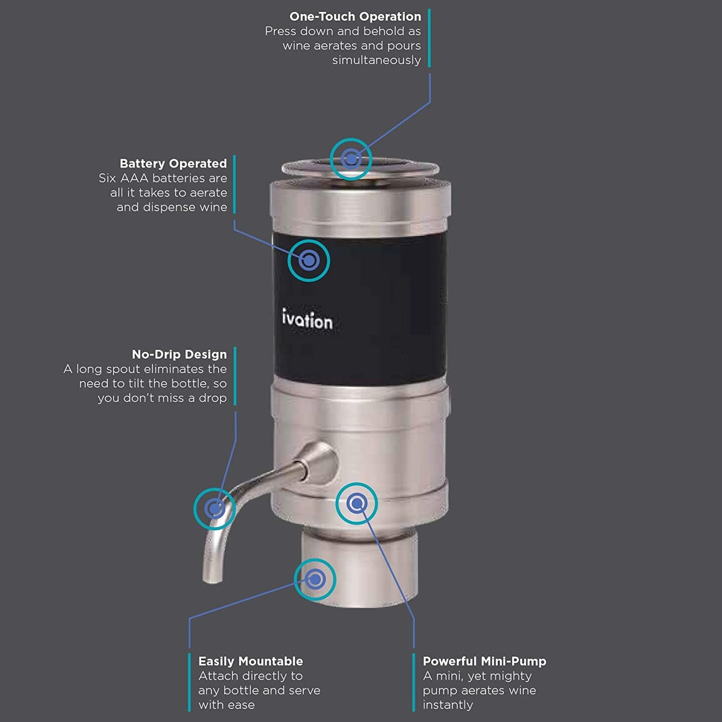 Ivation Wine Aerator and Dispenser Spout, Stainless Steel Electric Wine Pourer and Stopper