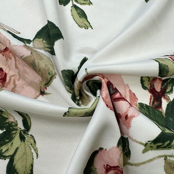 Ivory and Pink Multi Floral Print Scuba Knit Fabric By the Yard