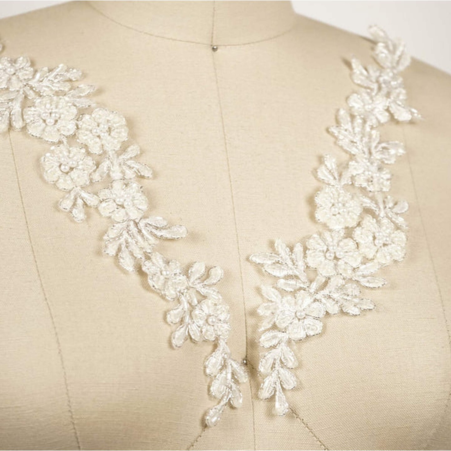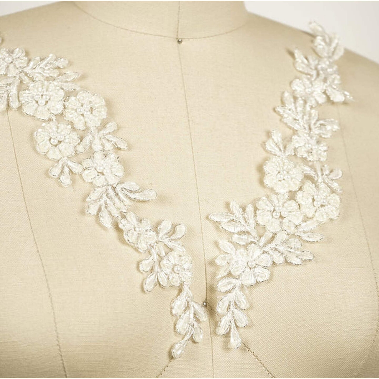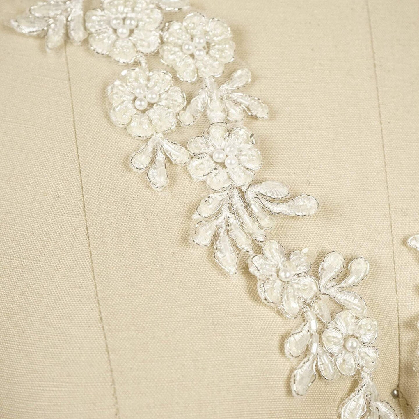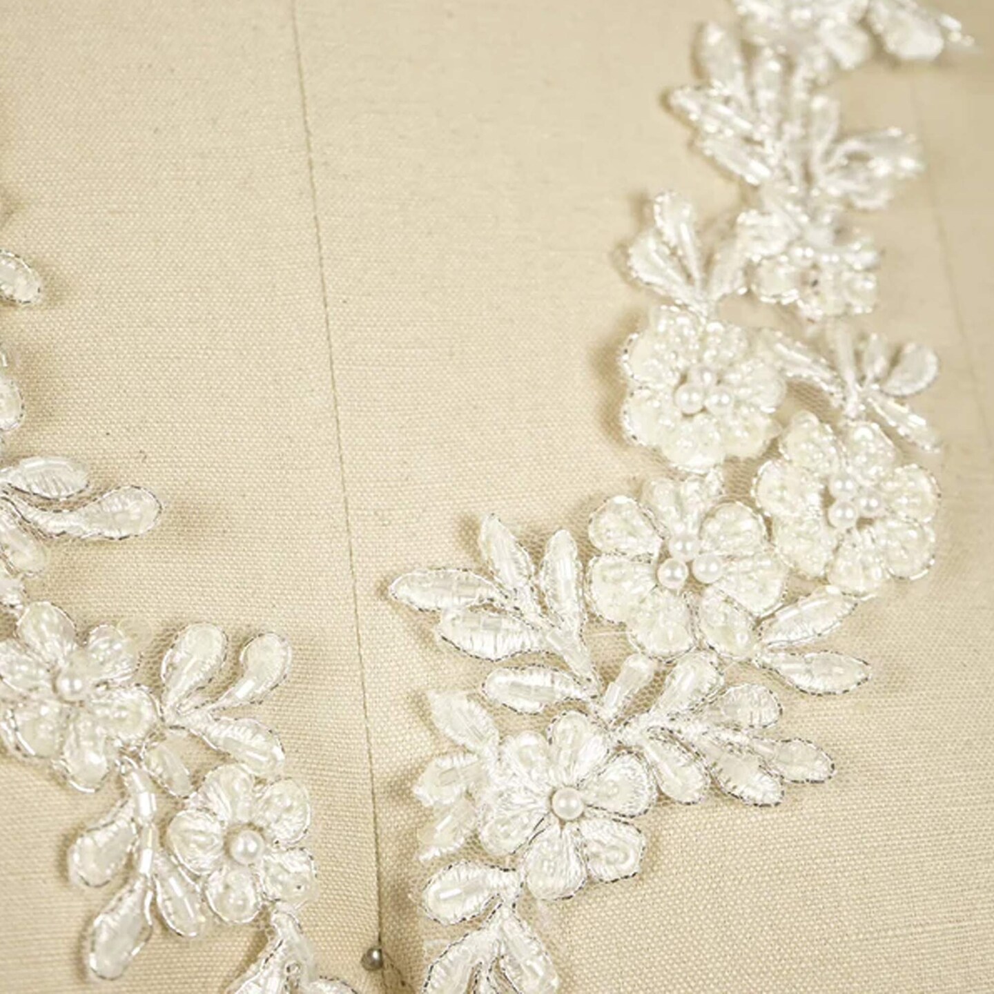 Ivory and Silver Beaded Appliques 10" Floral Lace Pair for Bridal Gown or Dance Costume