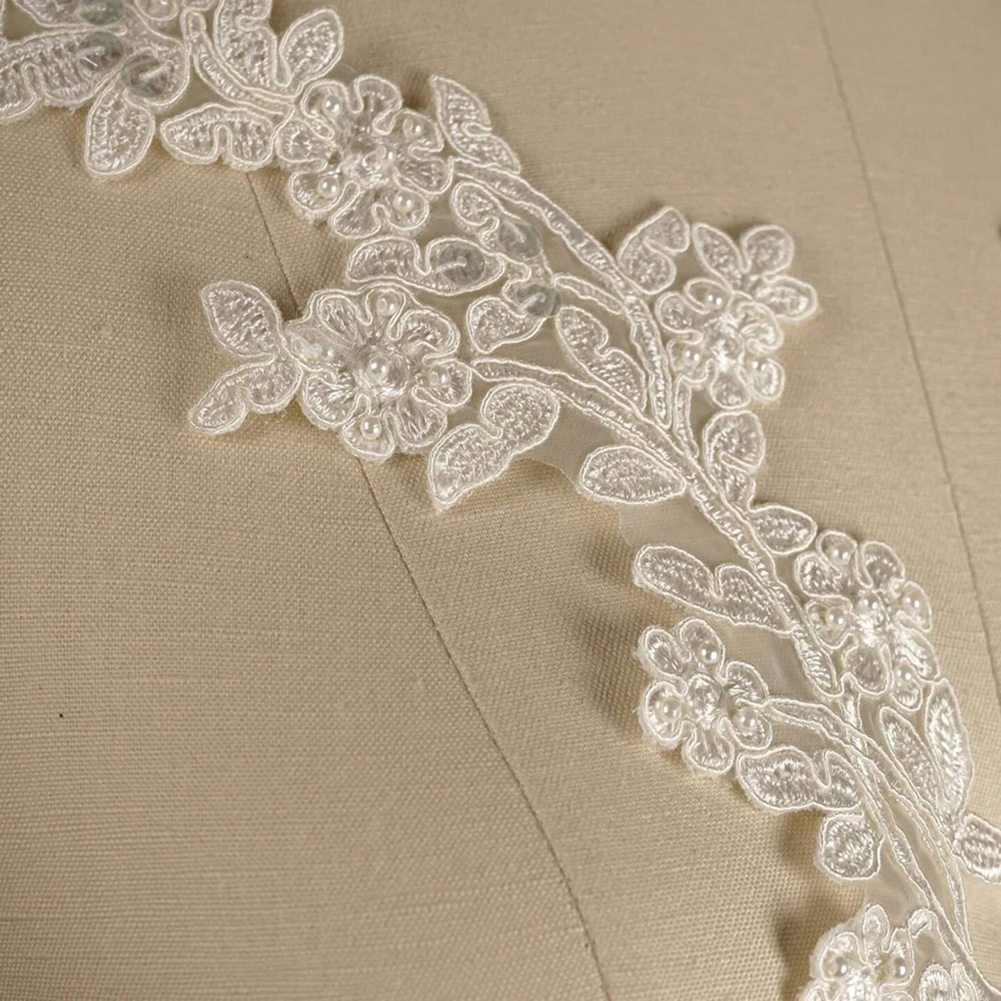 Ivory Beaded Bridal Appliques 10" Sequin Lace Pair for Wedding Gowns, Veils & Dresses