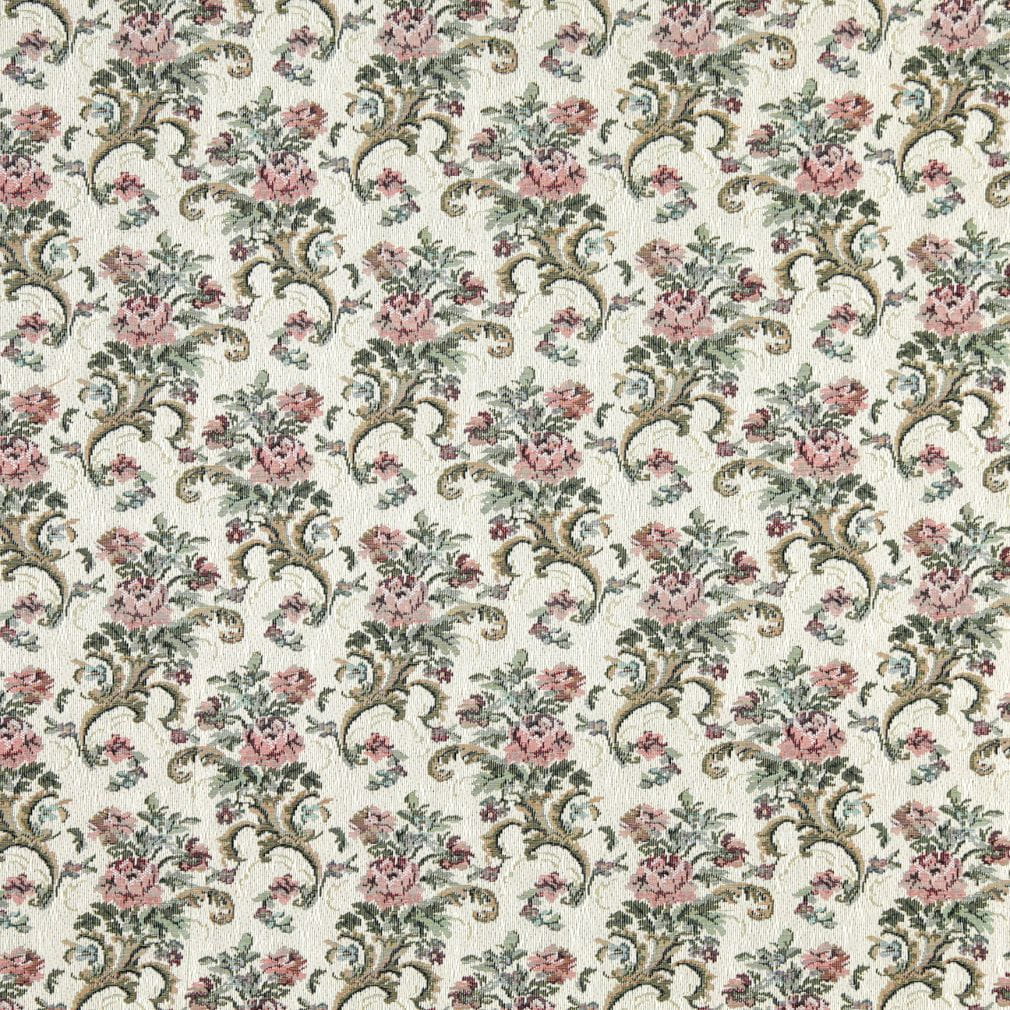 Ivory - Blue,pink Floral Upholstery Fabric 54 Inches"