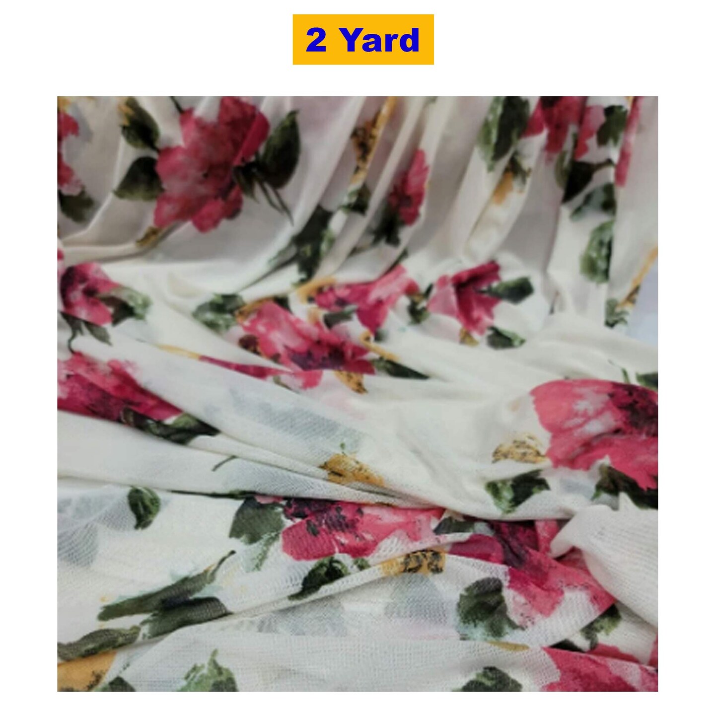 Ivory Four Way Stretch Lace Red Floral Flowers Fabric