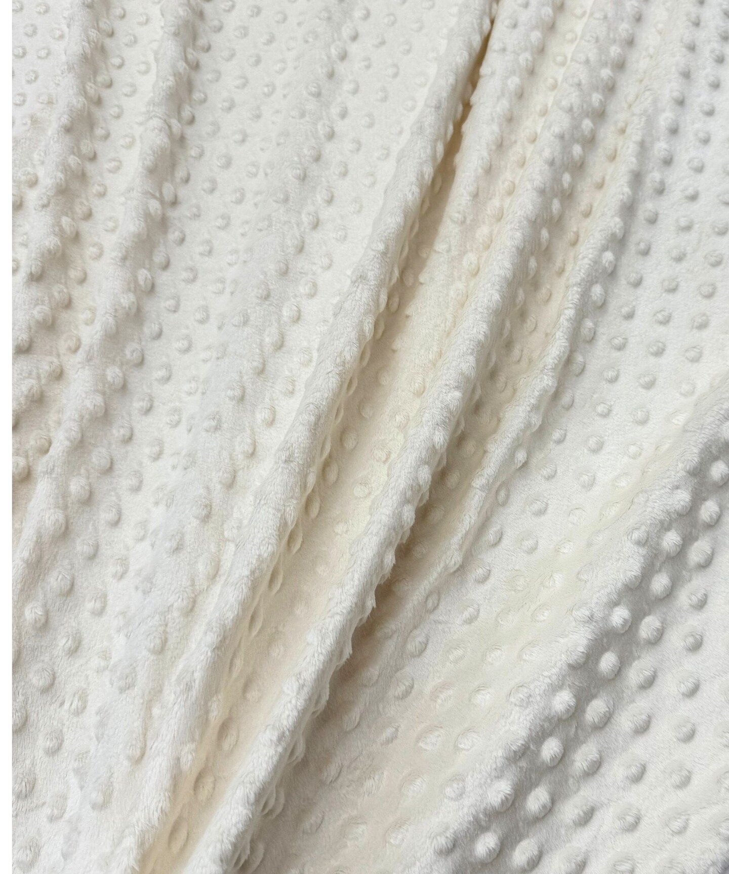 Ivory Minky Dot Fabric by the Yard, 60" Wide Ultra-Soft Plush Minky Fabric for Baby Blankets, Nursery Decor, Plush Toys & Sewing