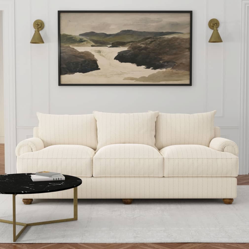 Ivory Mona - White & Ivory Stripe Upholstery Fabric 54 Inches"