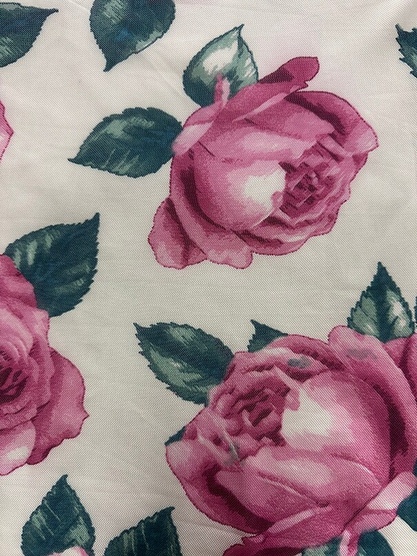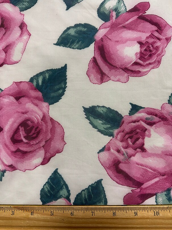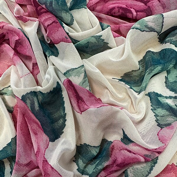 Ivory Multi Floral Print Stretch Mesh Fabric By the Yard