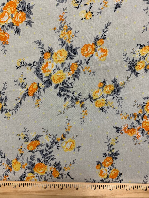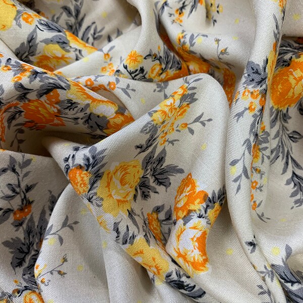 Ivory Rose Print Rayon Challis Fabric By the Yard