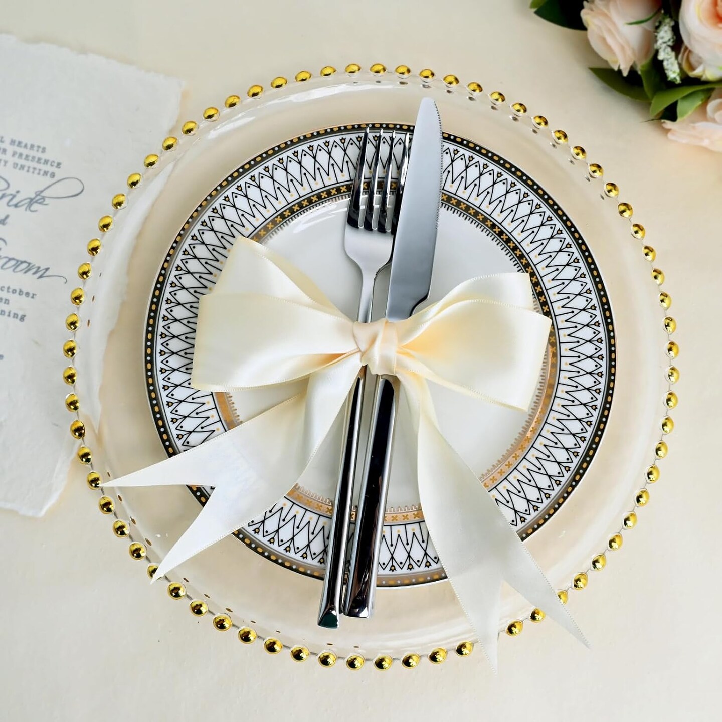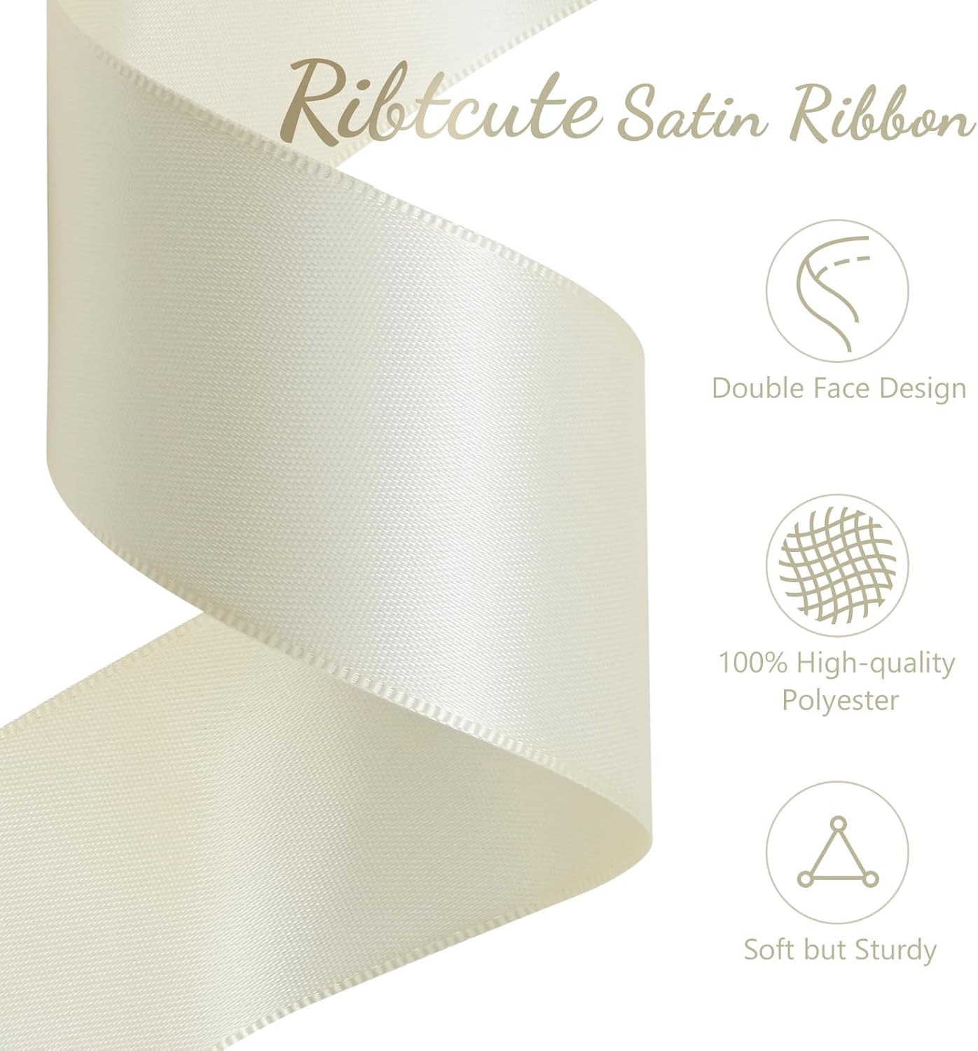 Ivory Satin Ribbon 1-1/2 Inch x 50 Yards Double Faced Silk Satin Ribbon