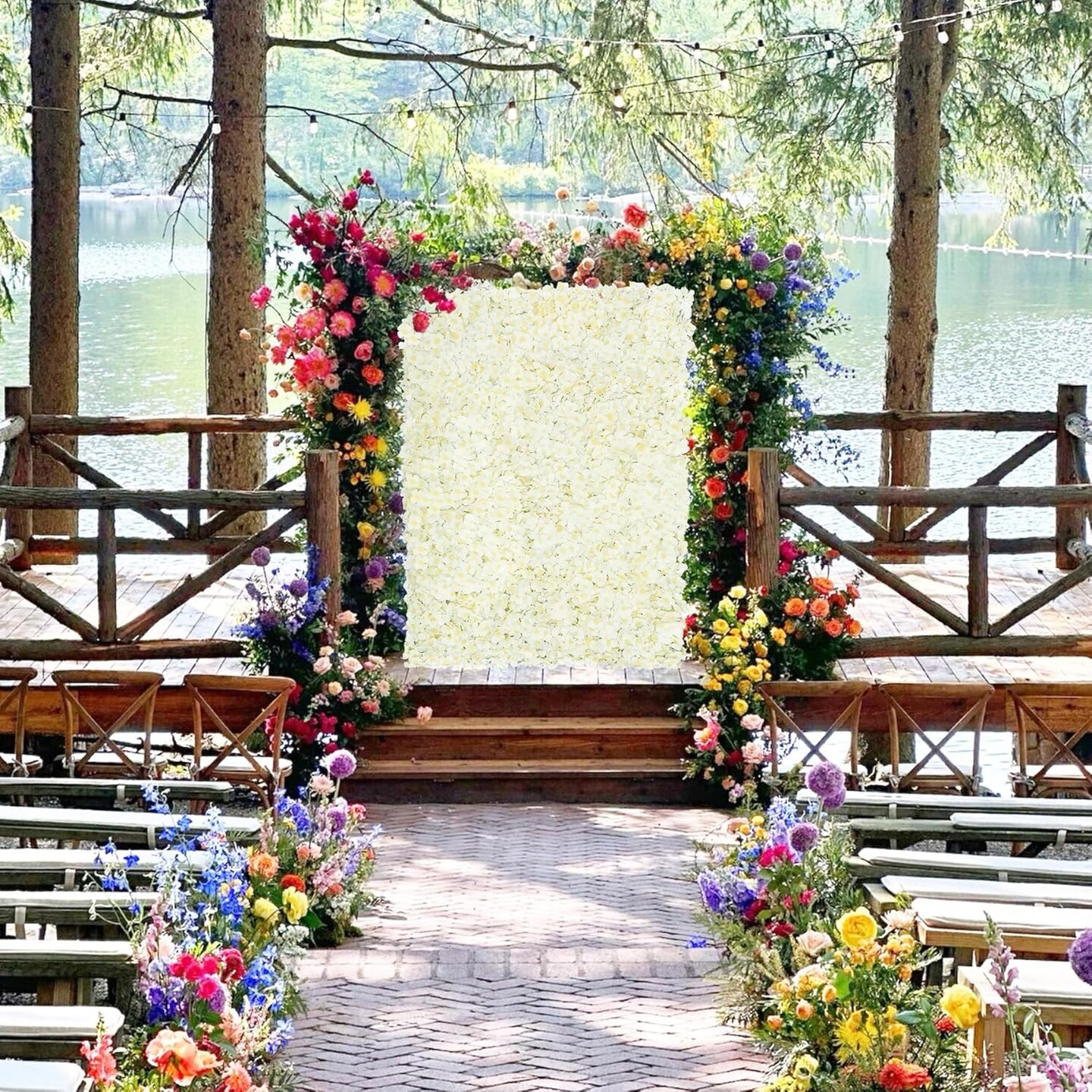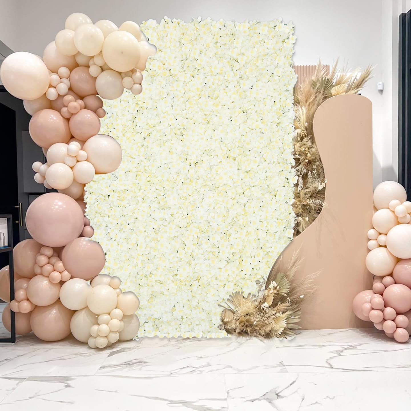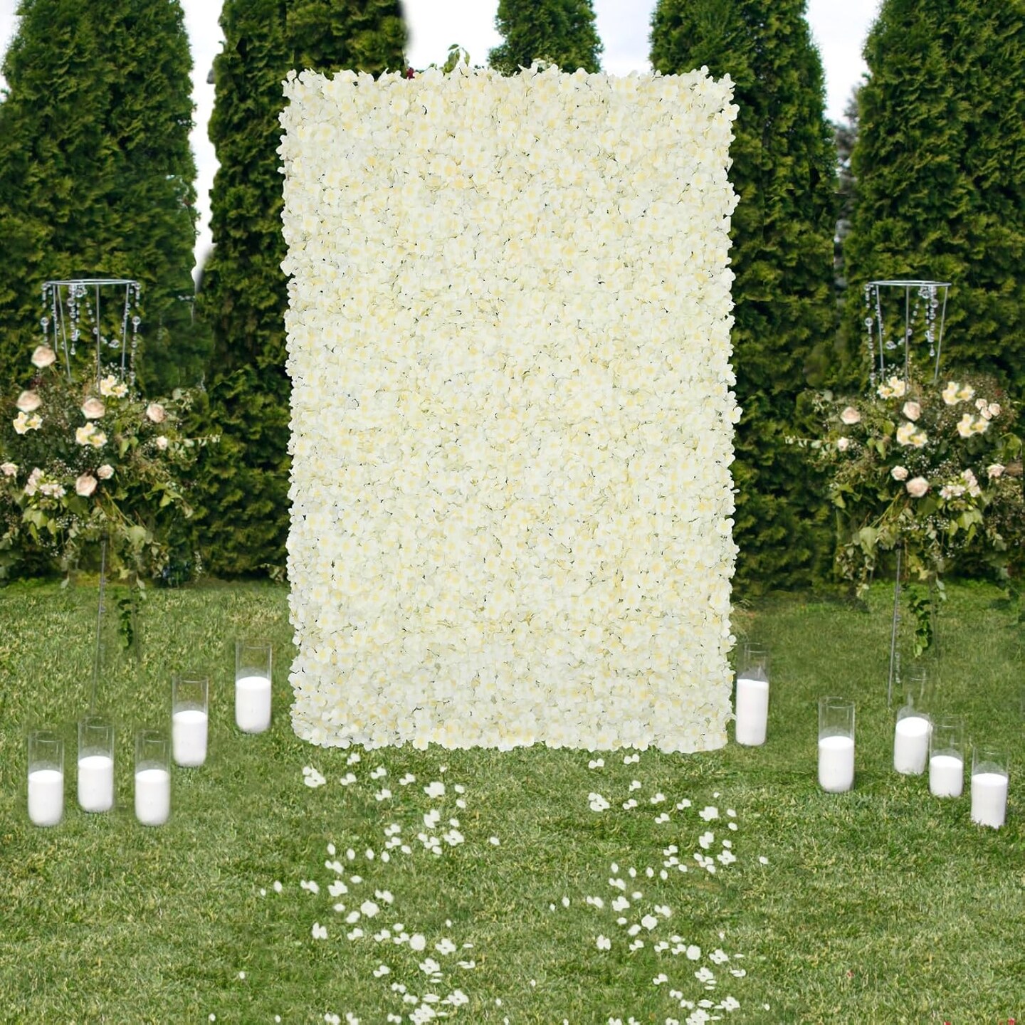 Ivory Silk Hydrangea Flower Wall Backdrop – 7x4.6ft Artificial Floral Panels for Weddings & Events