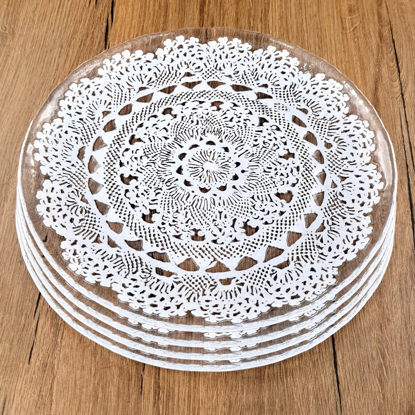 Ivory White Lace Pattern Glass Accent Plate Decorative Serving and Display