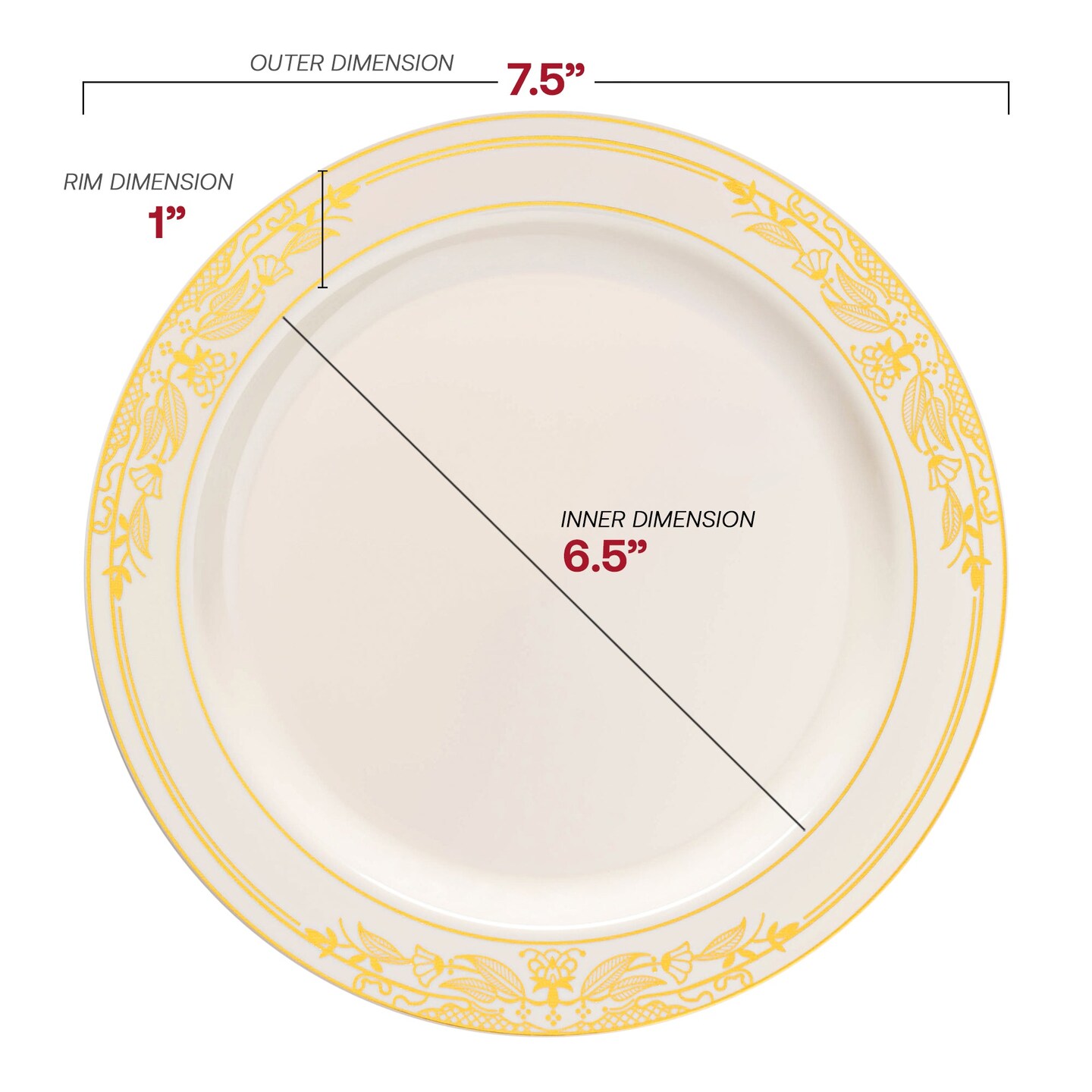 Ivory with Gold Harmony Rim Plastic Appetizer/Salad Plates - 7.5" (120 Plates)