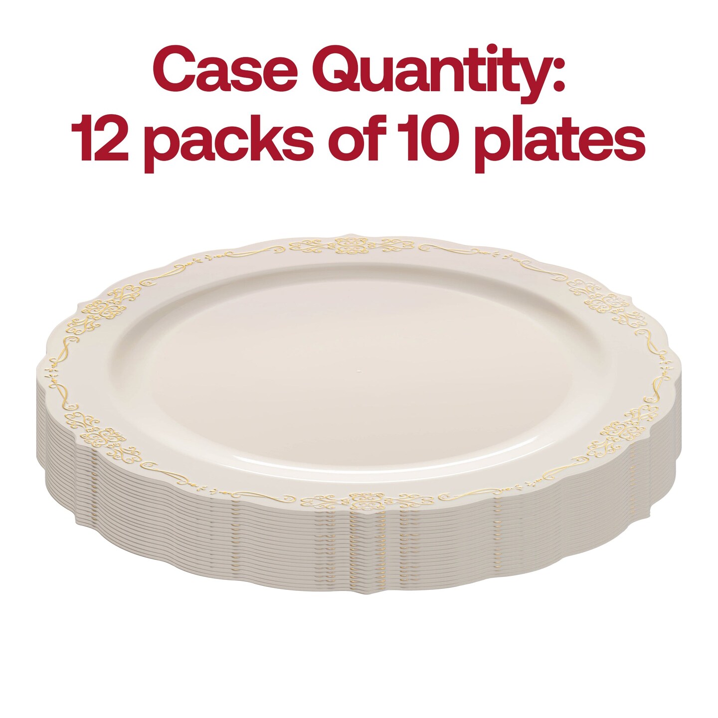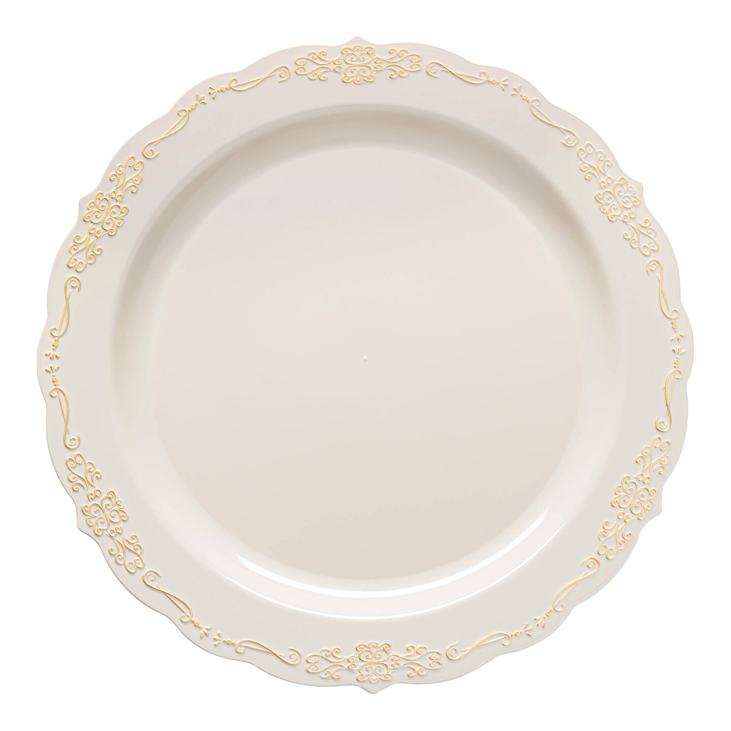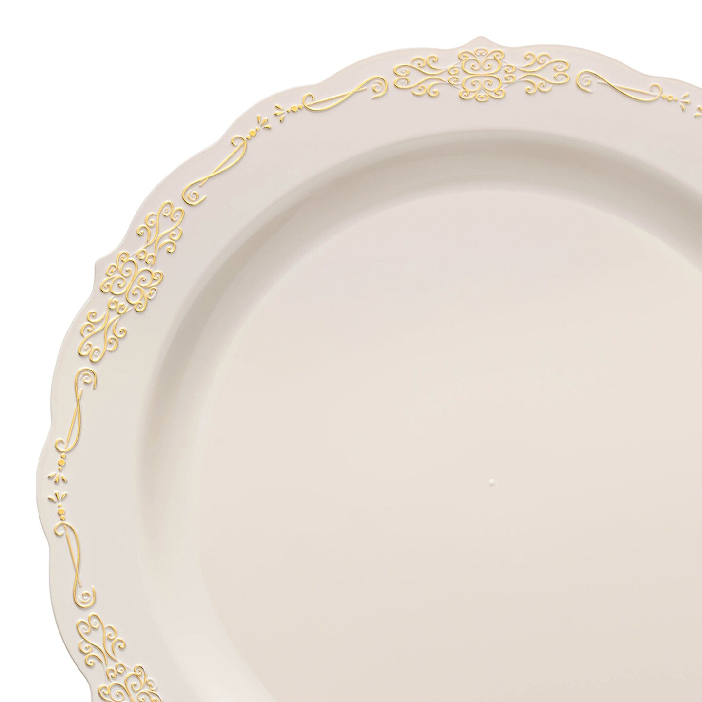 Ivory with Gold Vintage Rim Round Disposable Plastic Appetizer/Salad Plates - 7.5" (120 Plates)