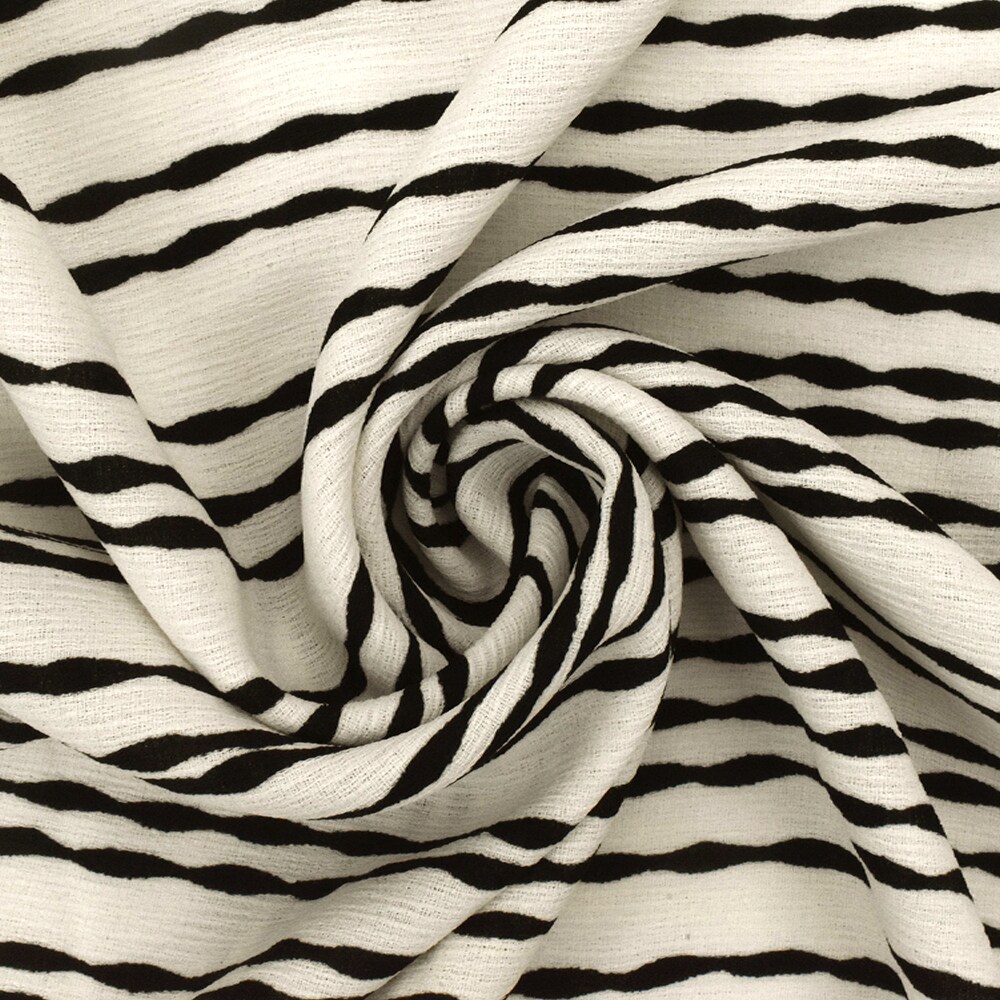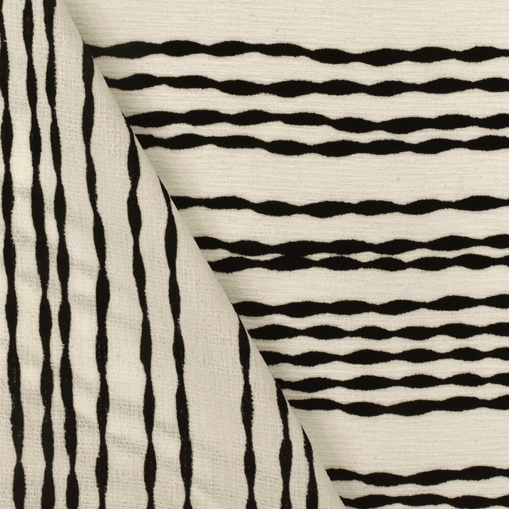 Ivory-Black Bump Stripe Printed Striated Texture Crepe Fabric By the Yard