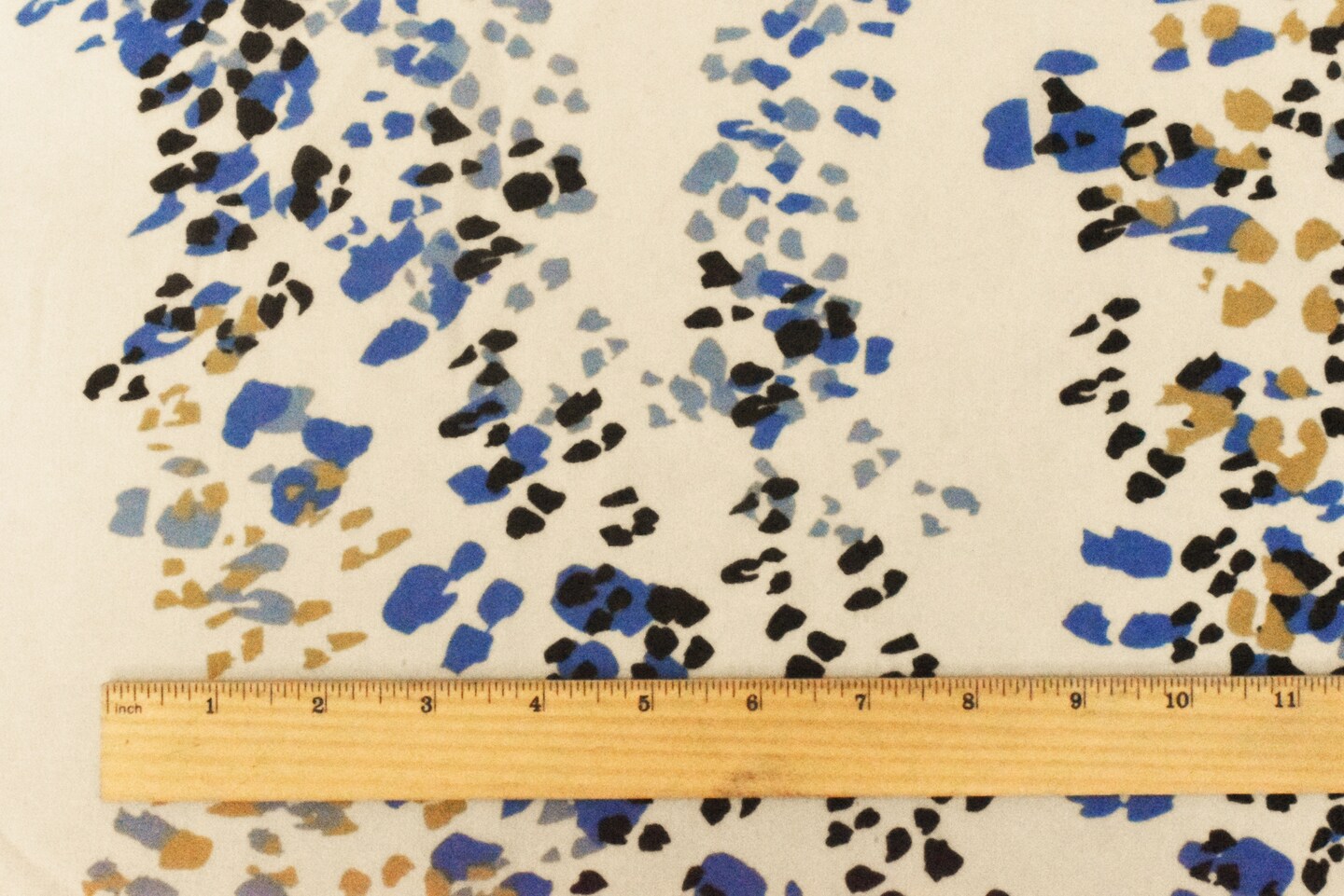 Ivory-Blue-Multi Abstract Printed Poly Chiffon Woven Fabric By the Yard