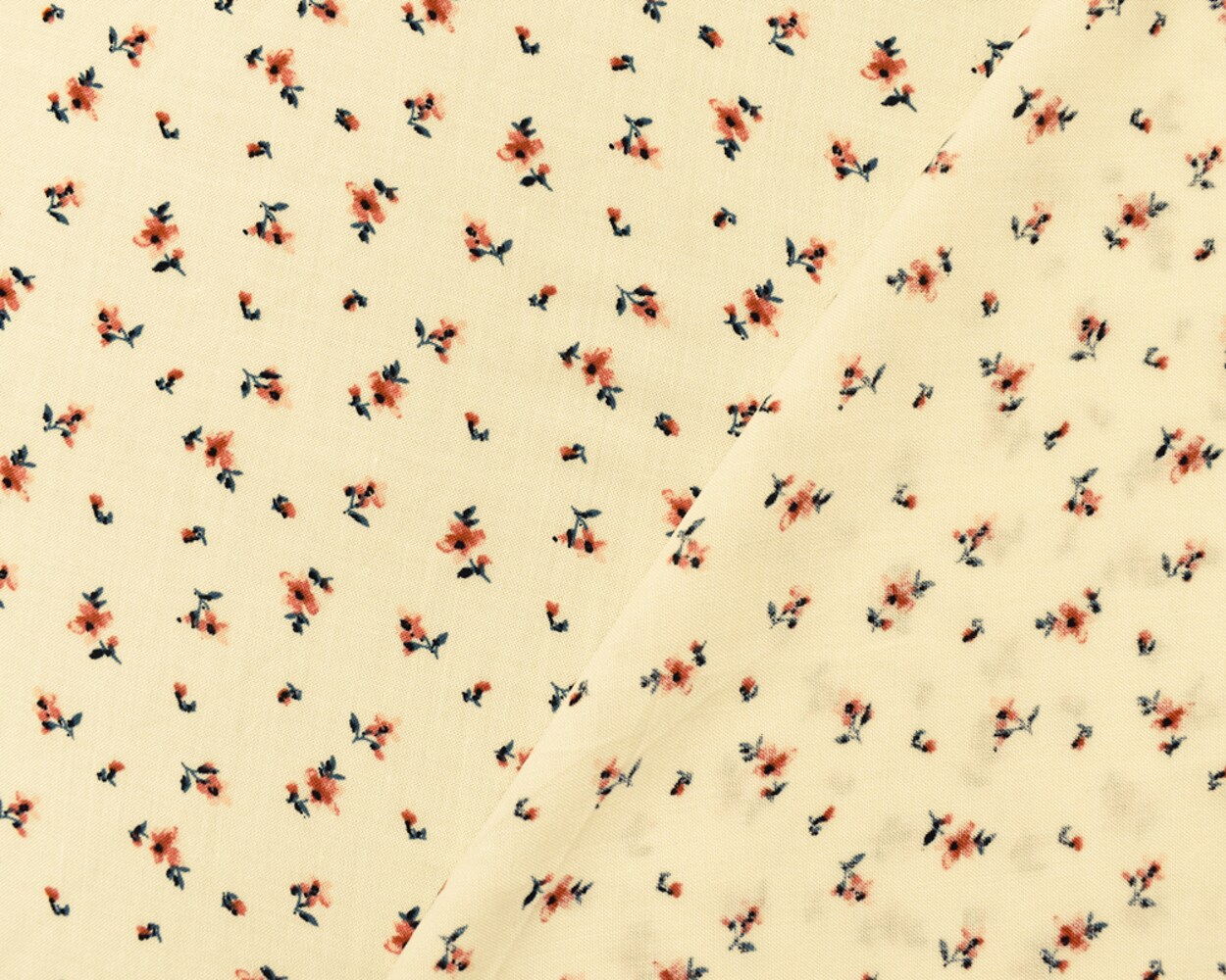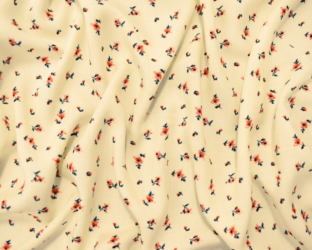 Ivory-Coral-Multi Rayon Ditsy Floral Printed Challis Woven Fabric By the Yard