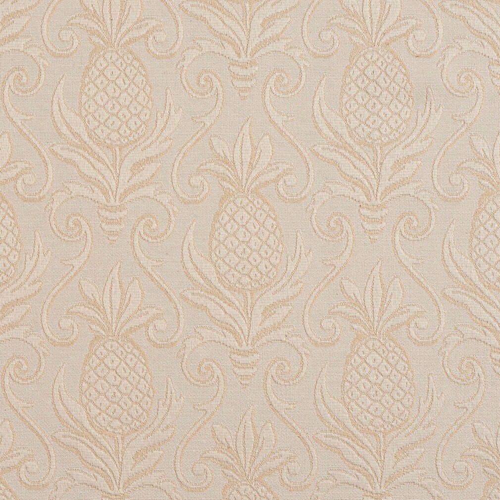 Ivory/Pineapple - White & Ivory Damask Upholstery Fabric 54 Inches"