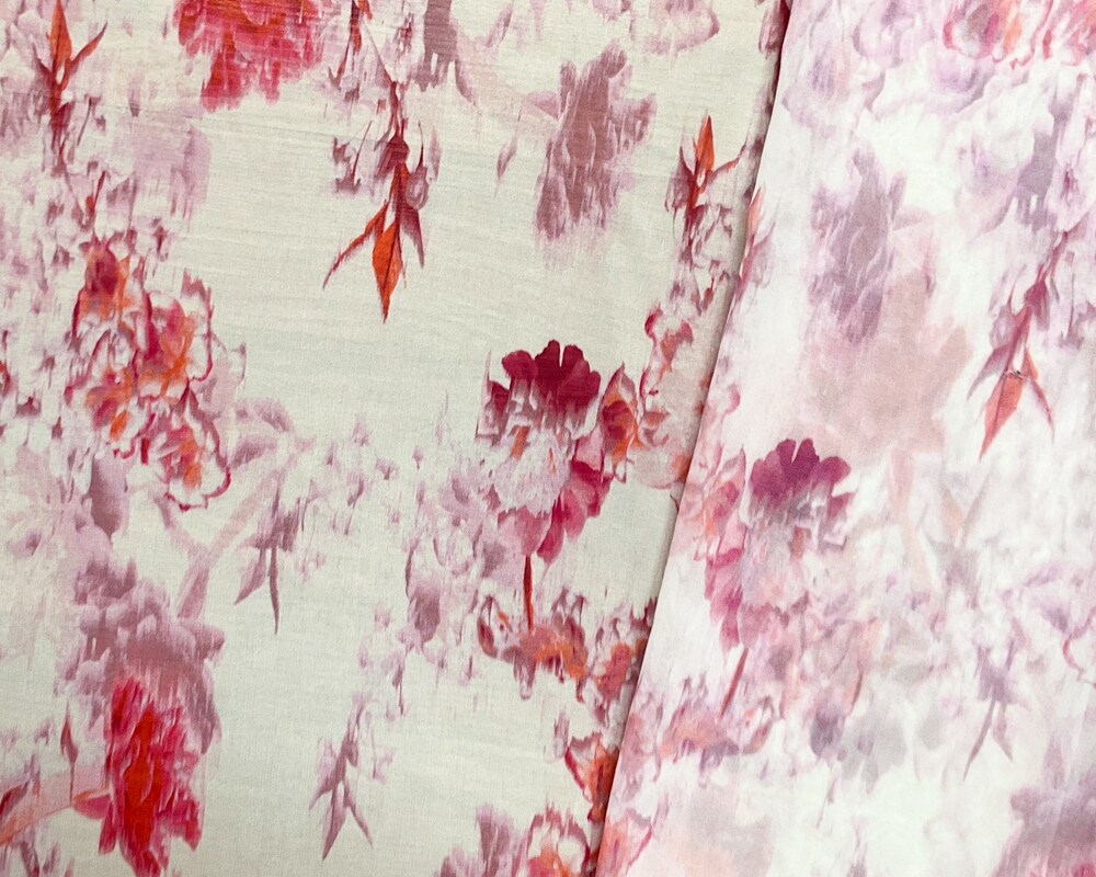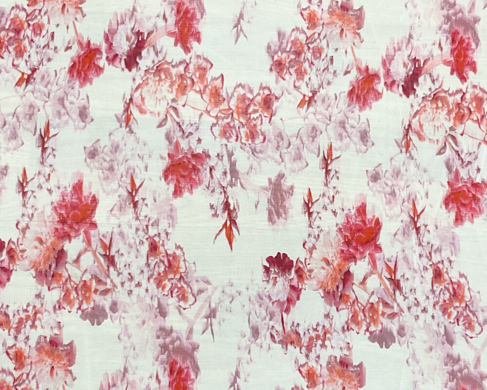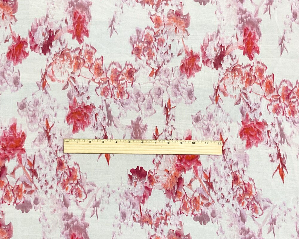 Ivory-Pink-Multi Poly Floral Printed Chiffon Woven Fabric By the Yard
