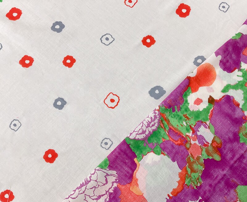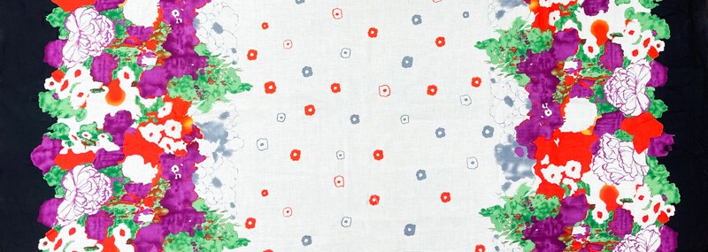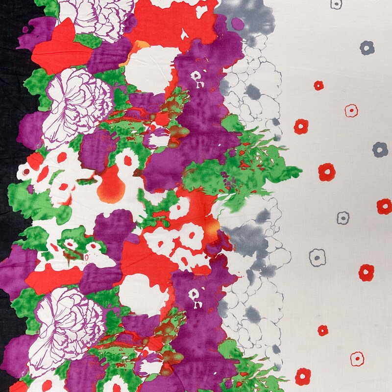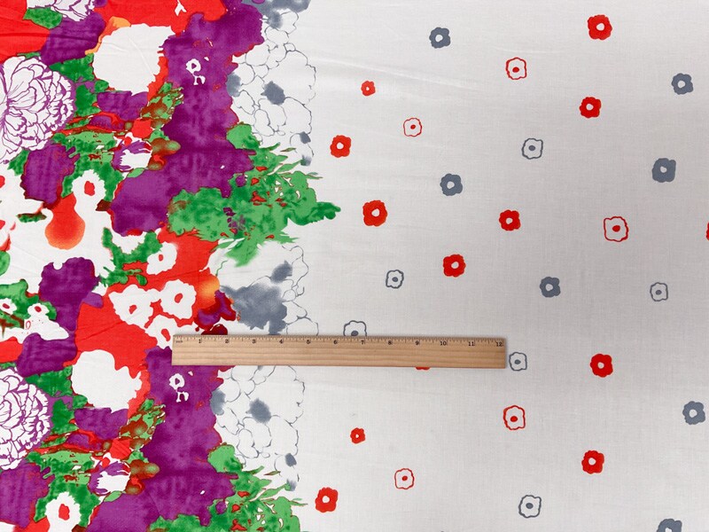 Ivory-Purple-Multi Cotton Floral Border Printed Voile Woven Fabric By the Yard