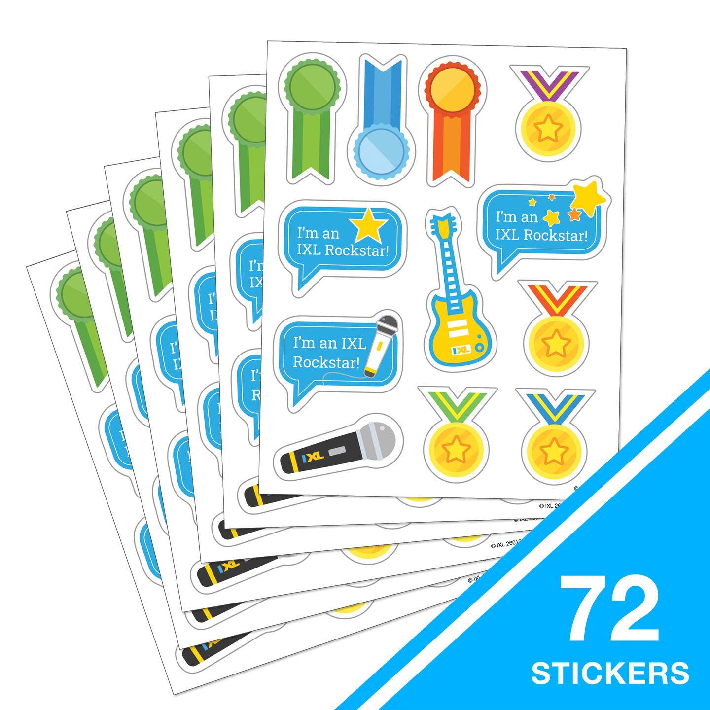 IXL 72 Ribbons and Rockstars Stickers for Kids, 6 Sheets of Incentives for Awards, Classroom Prizes, Reward Chart, Crafts, Scrapbooking, Planner, Motivational School Supplies