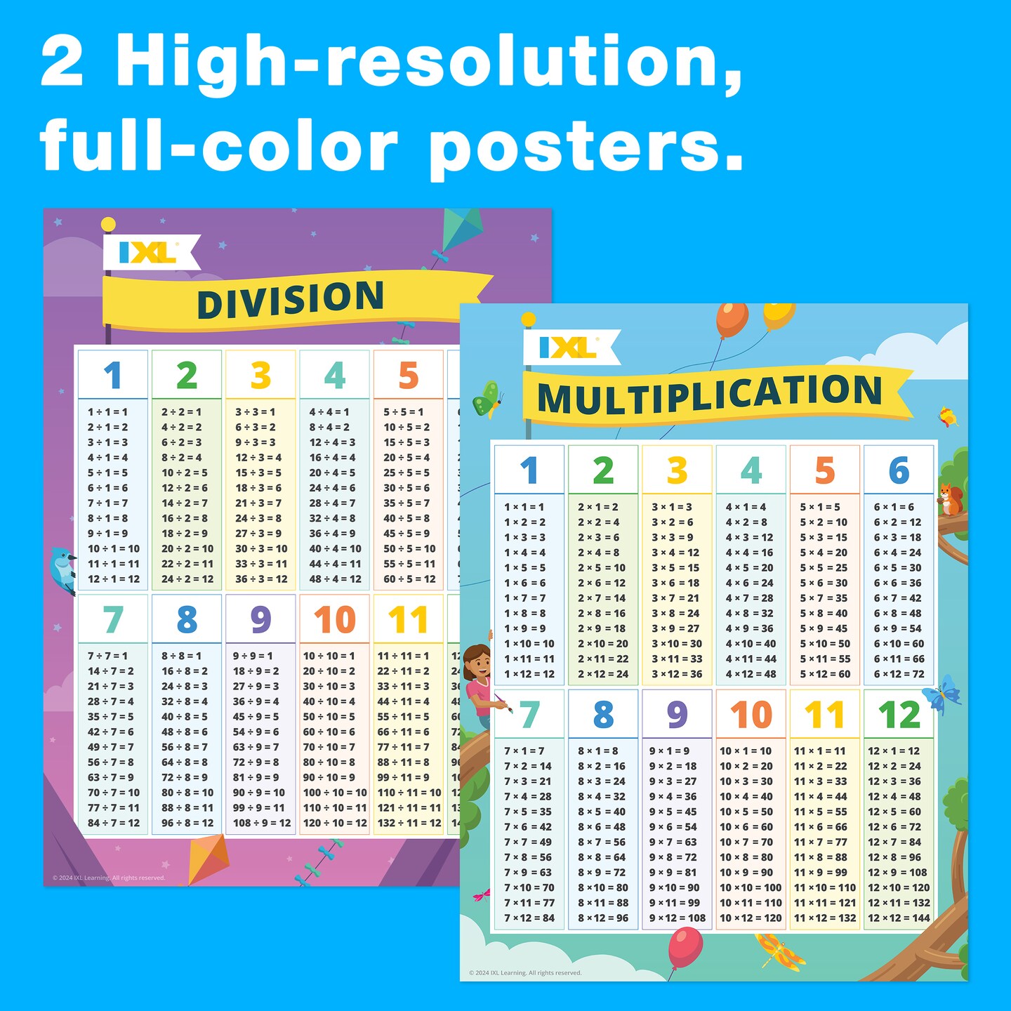 IXL Multiplication and Division Math Posters, Times Table and Division Math Facts Classroom Posters, Elementary and Middle School Math Classroom Decor